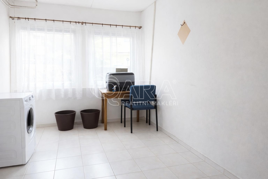 Dispozice domu je velmi praktická. V přízemí se nachází vstupní část s předsíní a halou, koupelna se sprchovým koutem, WC a tři samostatné místnosti. Jedna z nich vznikla úpravou původní garáže a dnes slouží jako plnohodnotný obytný prostor. Přízemí tak nabízí variabilní využití, například jako pracovna, pokoj pro hosty, zázemí pro podnikání nebo oddělená část pro vícegenerační bydlení.