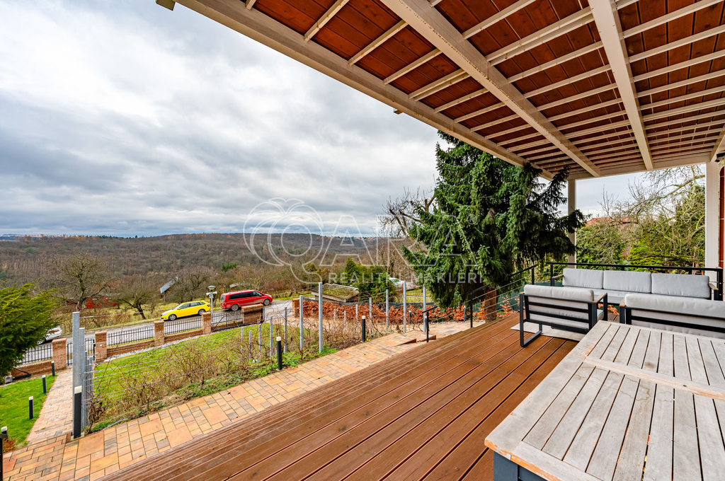 Nabízíme k pronájmu nadstandardní nízkoenergetickou novostavbu se dvěma oddělenými bytovými jednotkami, užitnou plochou 393m2, dispozicí 7+2kk. K dispozici tři terasy, parkovací stání až pro 5 vozů na pozemku. Bonusem je neopakovatelný výhled na Tiché údolí a severní část Prahy.