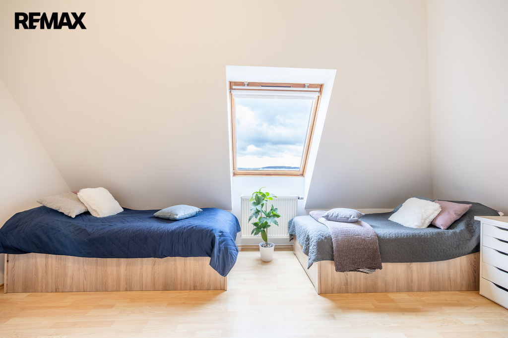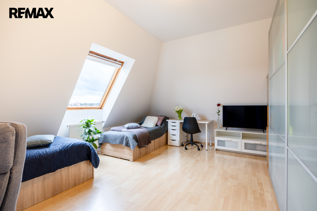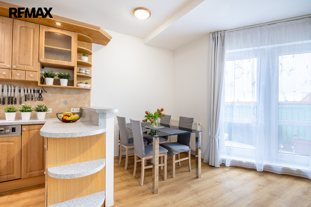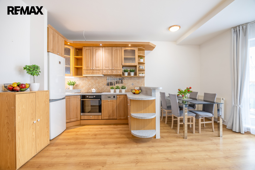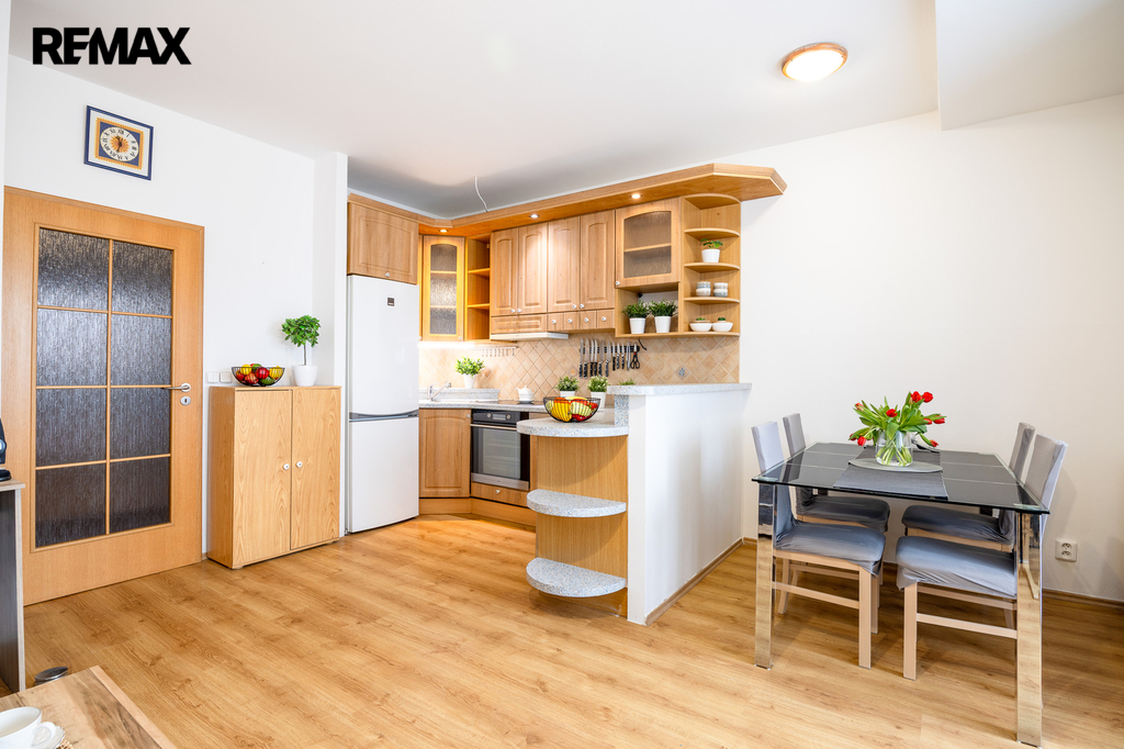 Dispozičně je byt řešen velmi prakticky. Obývací pokoj s kuchyňskou linkou a vestavnými spotřebiči tvoří přirozené centrum bytu – místo, kde se potkává každodenní život. Dvě samostatné ložnice nabídnou dostatek soukromí, ať už pro rodinu, pár nebo práci z domova. Nechybí koupelna s vanou, samostatná toaleta ani technická místnost se skladovacím prostorem, který v bytě vždy potěší. Byt je světlý a díky dvěma balkonům se v létě nabízí příjemné posezení s orientací na jihozápad – ideální třeba na večerní kávu nebo sklenku vína.