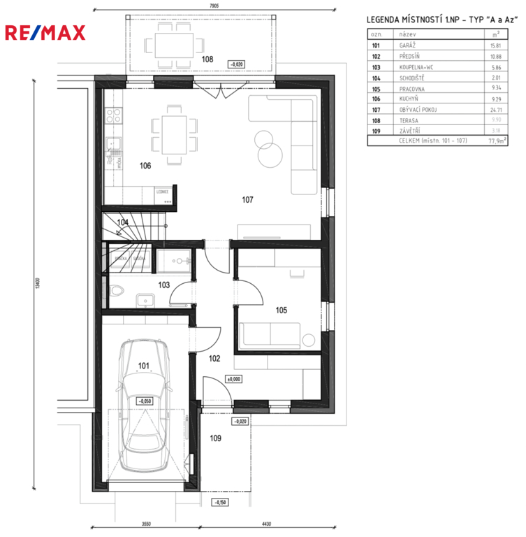 Rodinný dům má užitnou plochu 175 m² a nabízí garáž, 1 parkovací stání před domem a za zahradou je možnost využít další 2 parkovací stání.