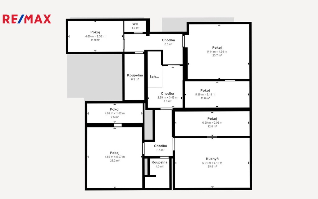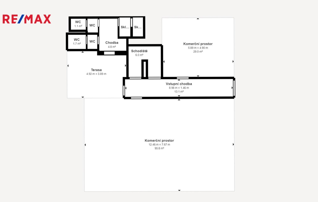 - Dva komerční prostory – (95,8 m² a 29 m²) - již pronajaté