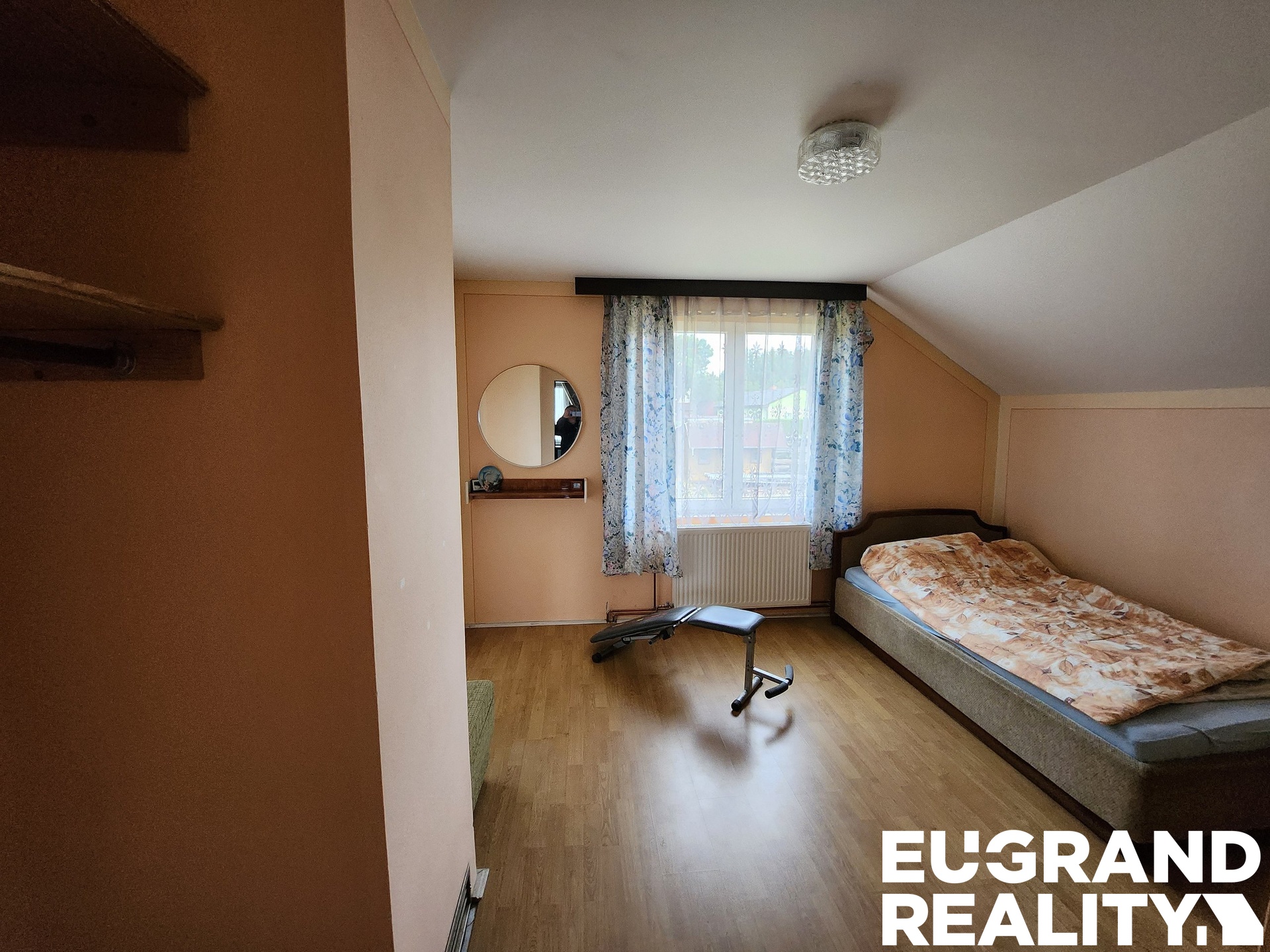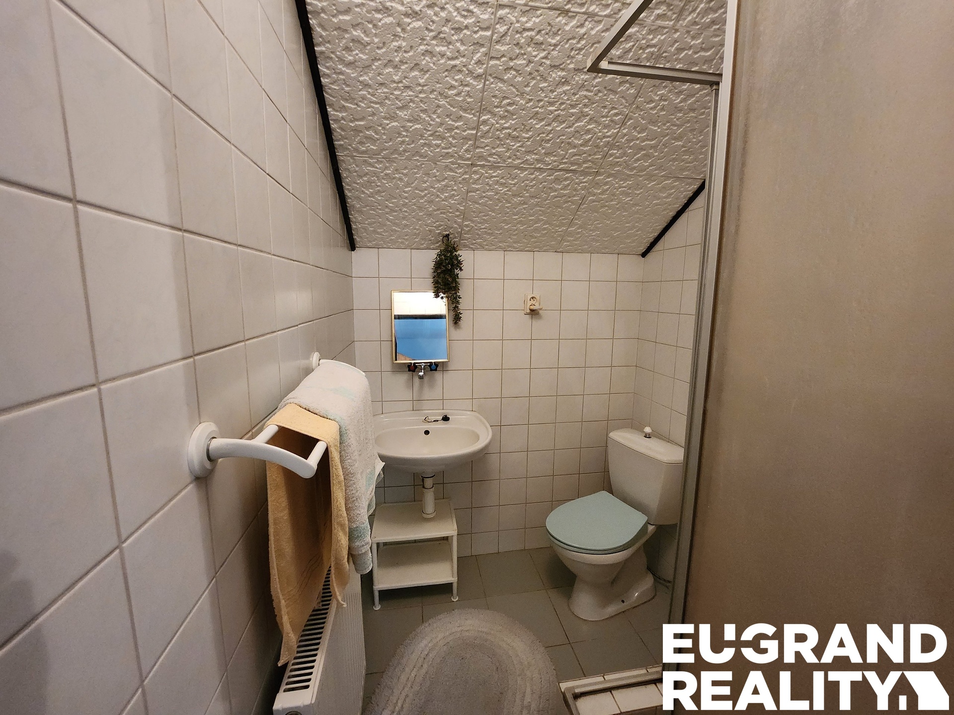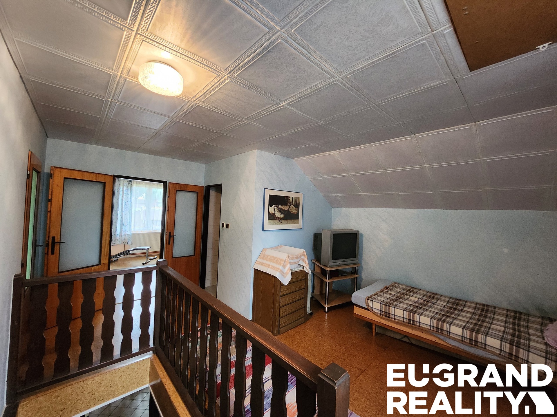 • V patře je větší chodba, koupelna se sprchovým koutem a WC, ložnice a dětský pokoj.