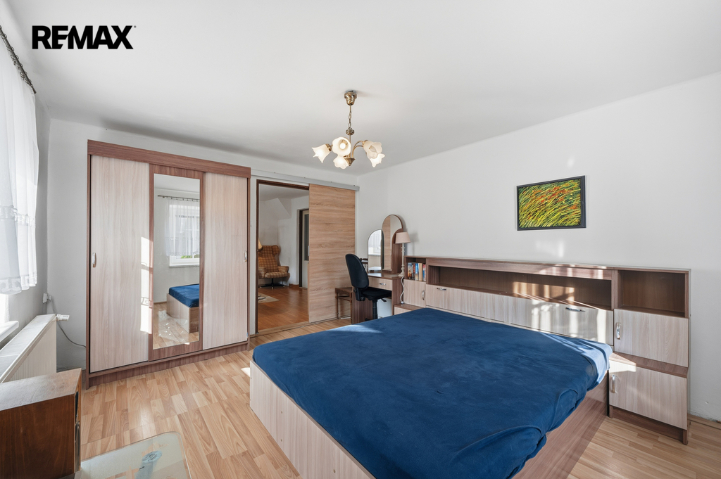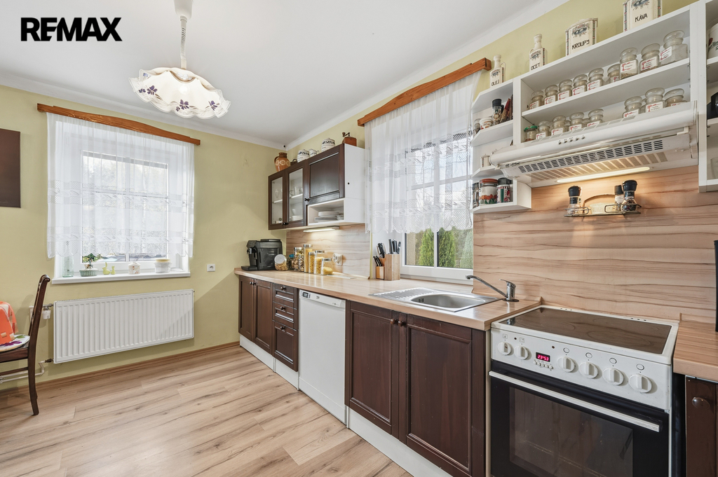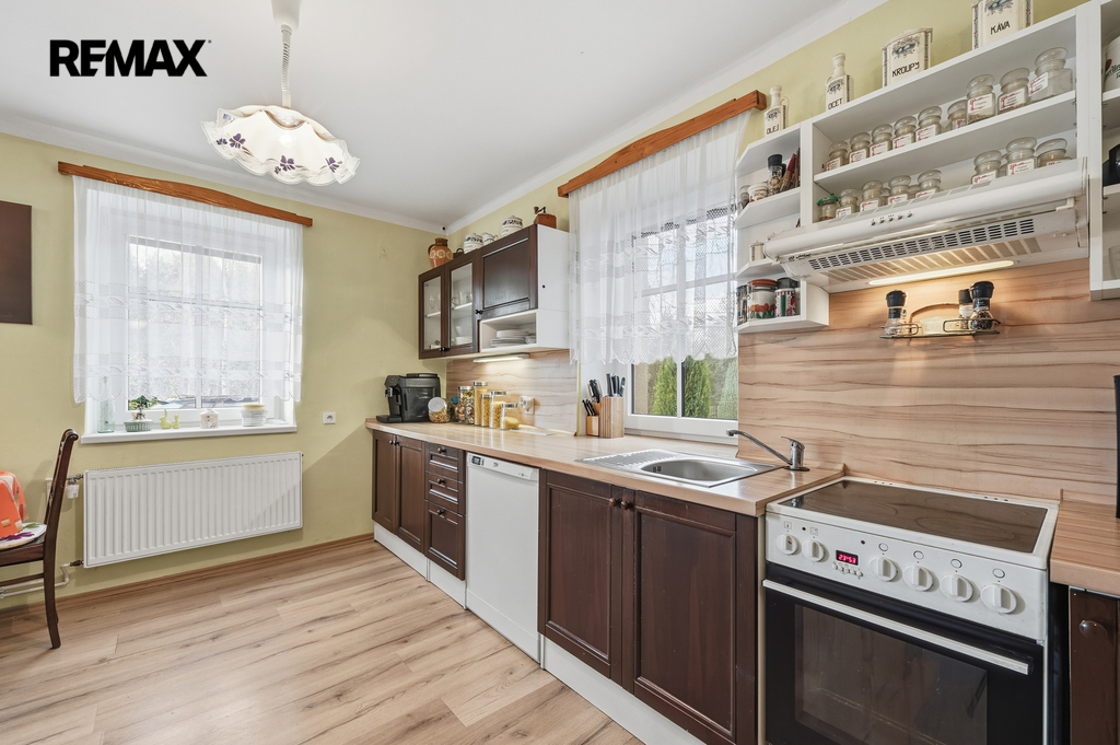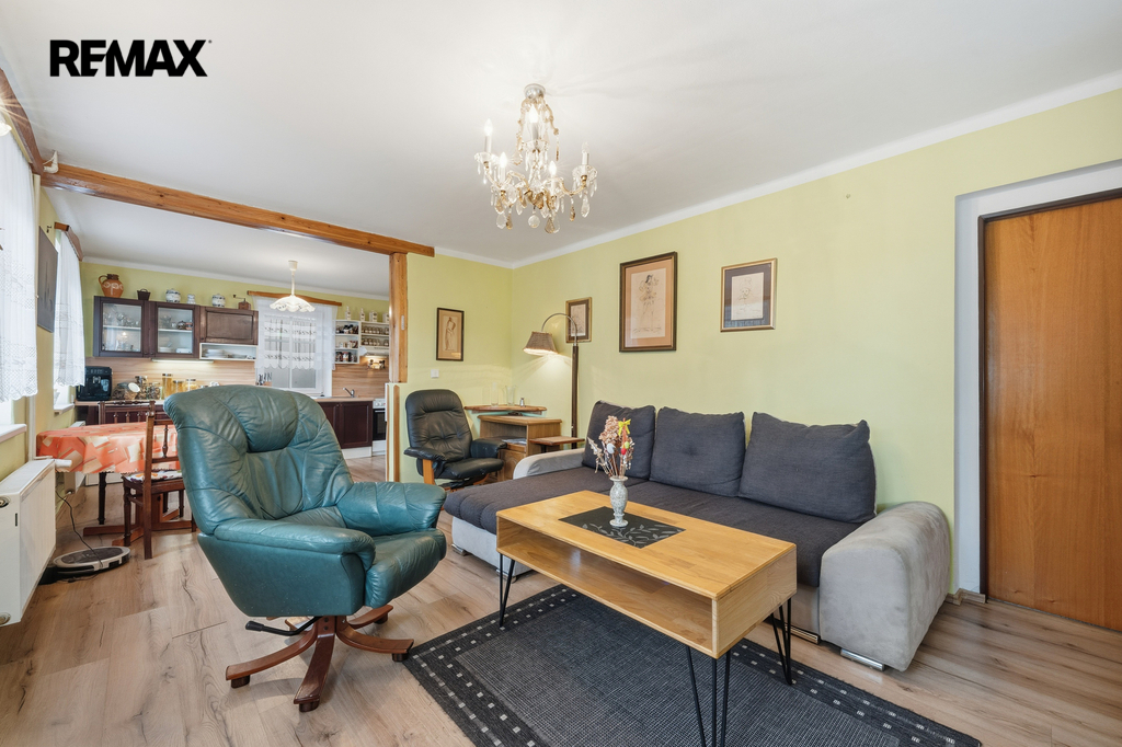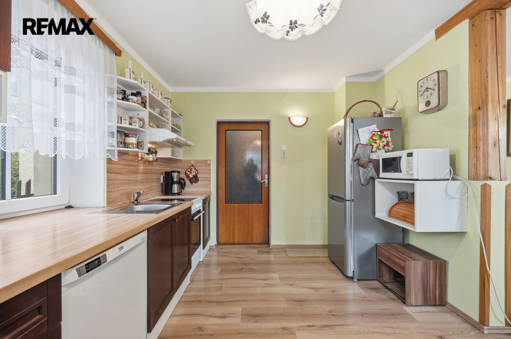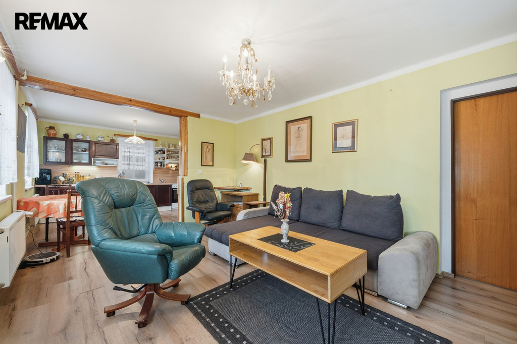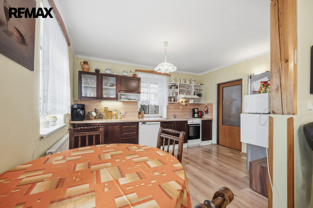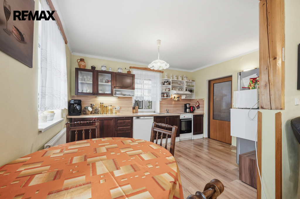 Dům s dispozicí 5+kk o celkové ploše 229,4 m², užitná plocha 129,1 m², obytná plocha 100,3 m², se 2 koupelnami a WC, zahradou (440 m²), stodolou, dílnou, zastřešeným parkovacím stáním a pergolou je ve dobrém stavu, zateplený.