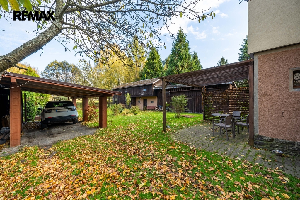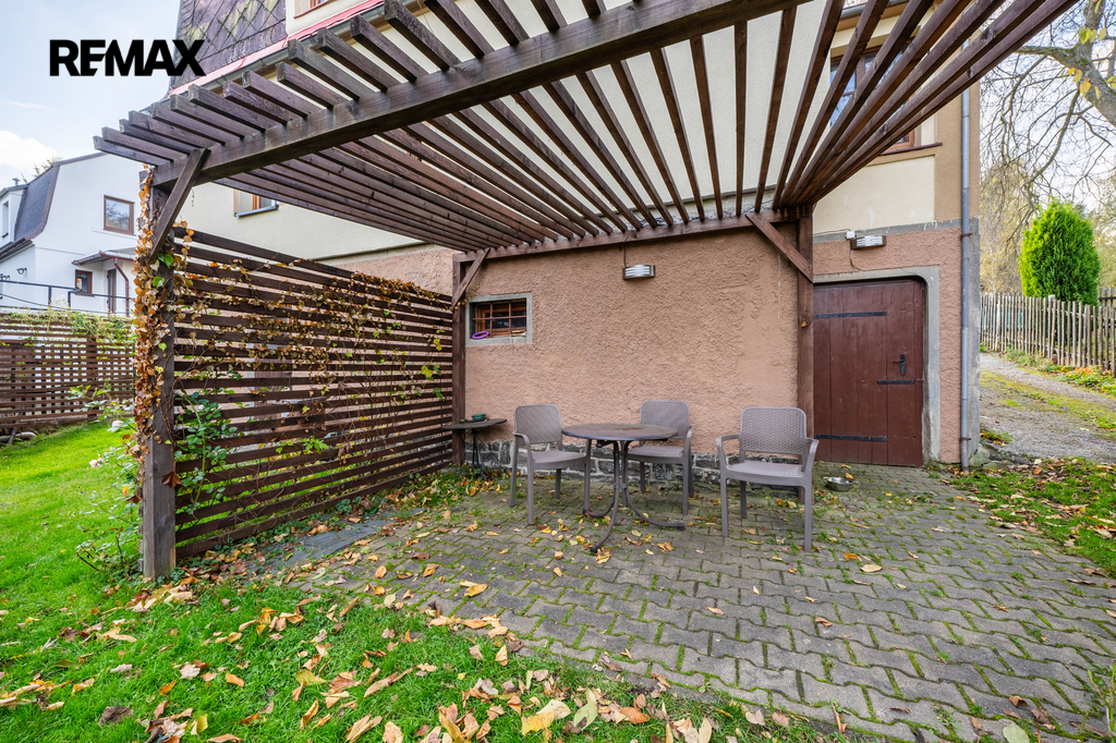 Zahrada o výměře 440 m² je dostatečná pro odpočinek, grilování po výletech po okolí. Parkování zajištěno na pozemku pod zastřešeným přístavkem.