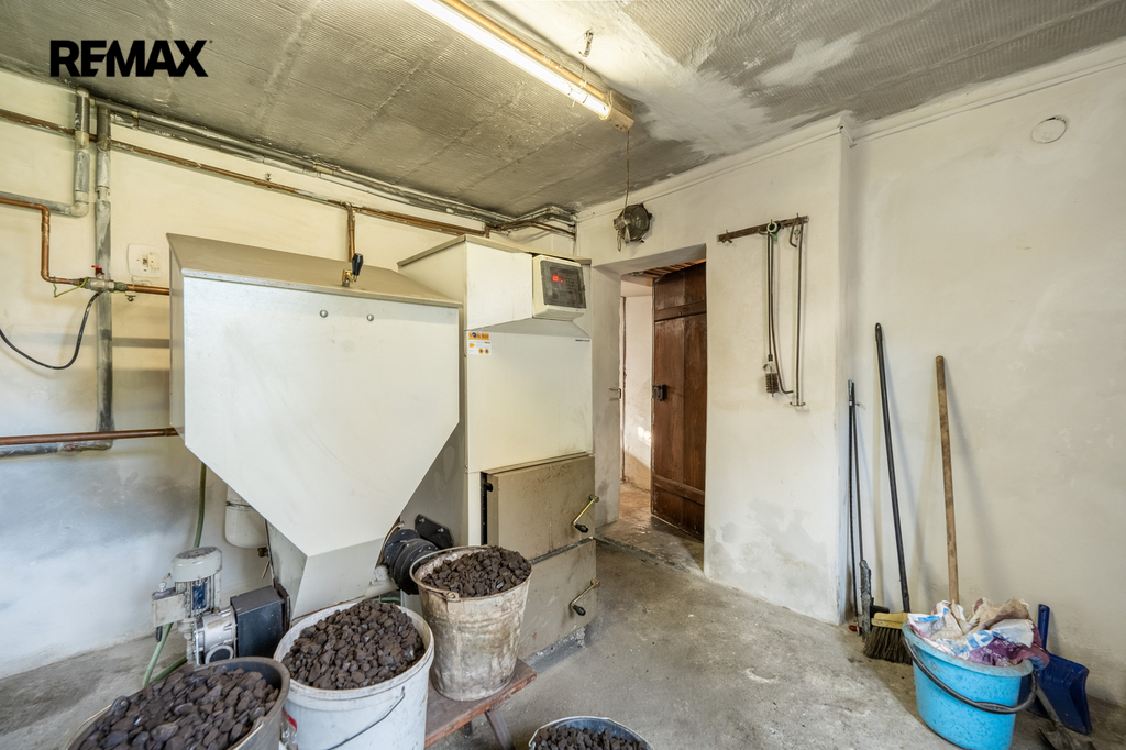 • 1. PP: dílna, kotelna s kotlem na tuhá paliva se zásobníkem, prádelna, chodba (celkem 58,6 m²)