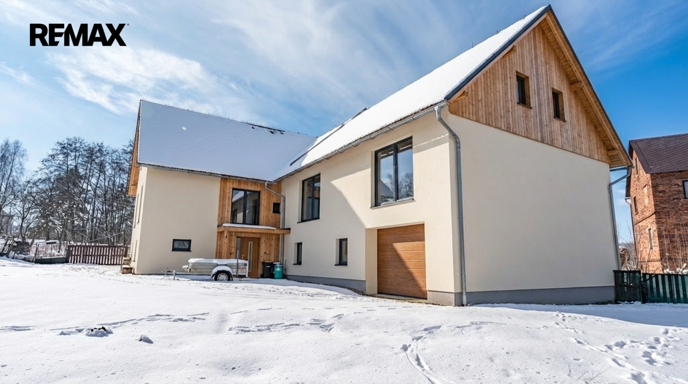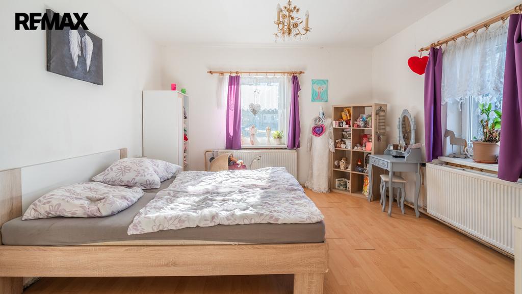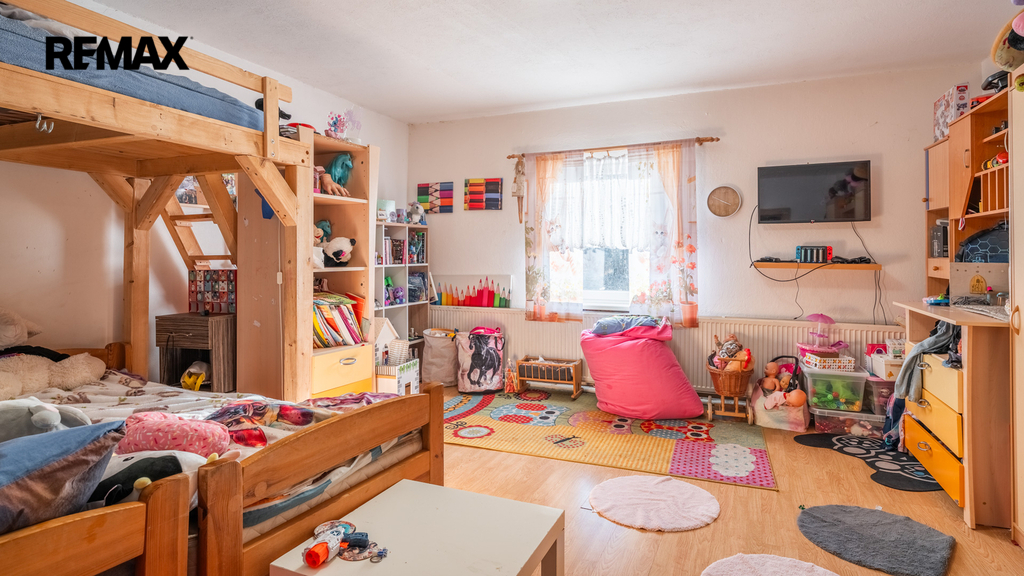 V patře jsou k dispozici čtyři samostatné pokoje a koupelna. Jeden z pokojů je připraven k dokončení a po úpravě může sloužit jako kuchyň s obývacím pokojem. Dispozice horního podlaží tak nabízí variabilní využití podle Vašich potřeb.