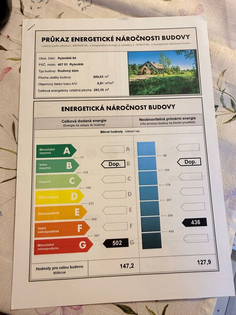 - Ukazatel energetické náročnosti budovy: 502 kWh/m²