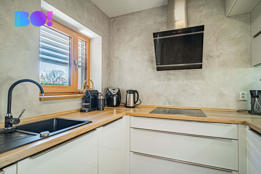 Dům je novostavba s užitnou plochou 137 m², stojící na pozemku o výměře 799 m². Dispozice 4+kk je navržena tak, aby splňovala nároky současného rodinného života. Dominantou je velký obývací pokoj s krbem propojený s moderním kuchyňským koutem. K dispozici jsou také dvě samostatné koupelny (vana, sprchový kout, dvě toalety, bidet), technická místnost a prakticky řešené úložné prostory.