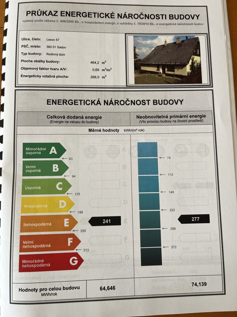 - Energetická náročnost budovy: E - Nehospodárná