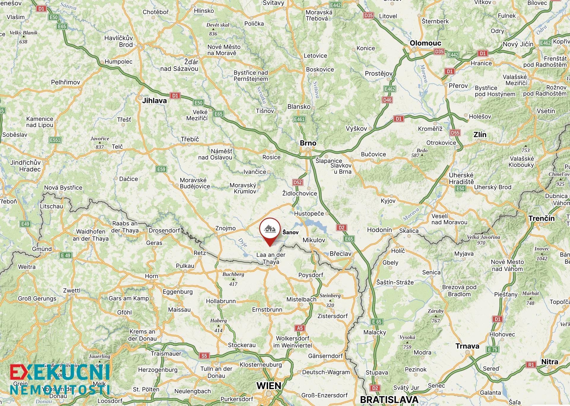 Šanov je vzdálen pouhých 5 km od Hrušovan nad Jevišovkou a Mikulov 25 km.
