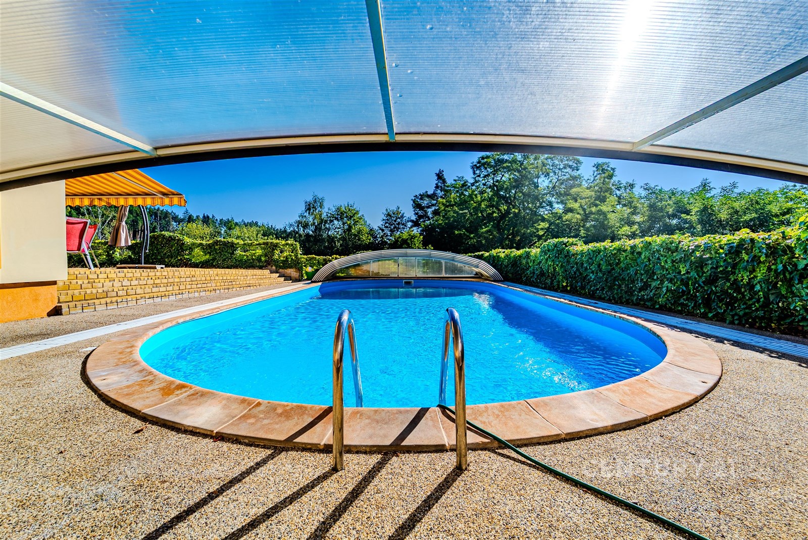 Máme pro vás mimořádnou nabídku – prostorný rodinný dům z roku 2005 o dispozici 7+1 a užitné ploše 327 m², zasazený do rozlehlého pozemku o velikosti 5 036 m² s vlastní zahradou, krytým bazénem a dvojgaráží.