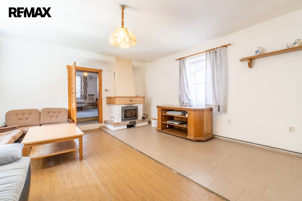 Obytná část o dispozici 3+1 má přibližně 95 m² a nachází se v levé části domu, která byla využívána k víkendovému bydlení.