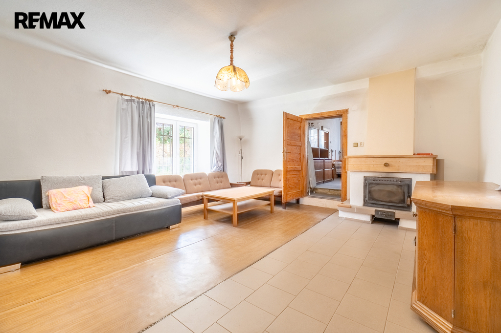 Obytná část o dispozici 3+1 má přibližně 95 m² a nachází se v levé části domu, která byla využívána k víkendovému bydlení.