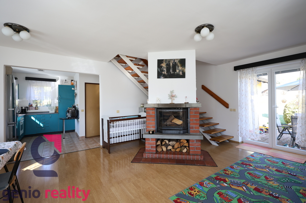 Teplo domova: Dominantou obývacího pokoje je krb, který díky horkovzdušným rozvodům do patra krásně a rychle vytopí nejen přízemí, ale i ložnice v patře.