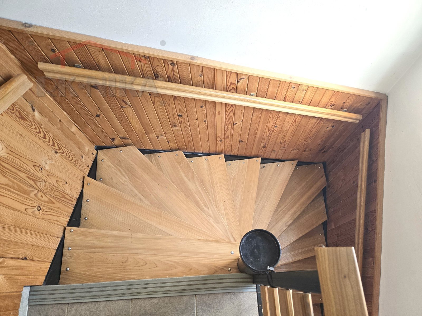 Z předsíně vás spojovací chodba zavede na toaletu, do spíže a také do garáže, což zajišťuje pohodlnou dostupnost všech důležitých prostor. V patře najdete dvě prostorné ložnice, které jsou průchozí, a jednu ložnici, která slouží také jako pracovna. Z této pracovny se dostanete na velkou terasu, ideální pro relaxaci, a do komory, ze které vede žebřík na půdu. Také zde je přístup na toaletu přímo ze schodiště, což je velmi praktické.
