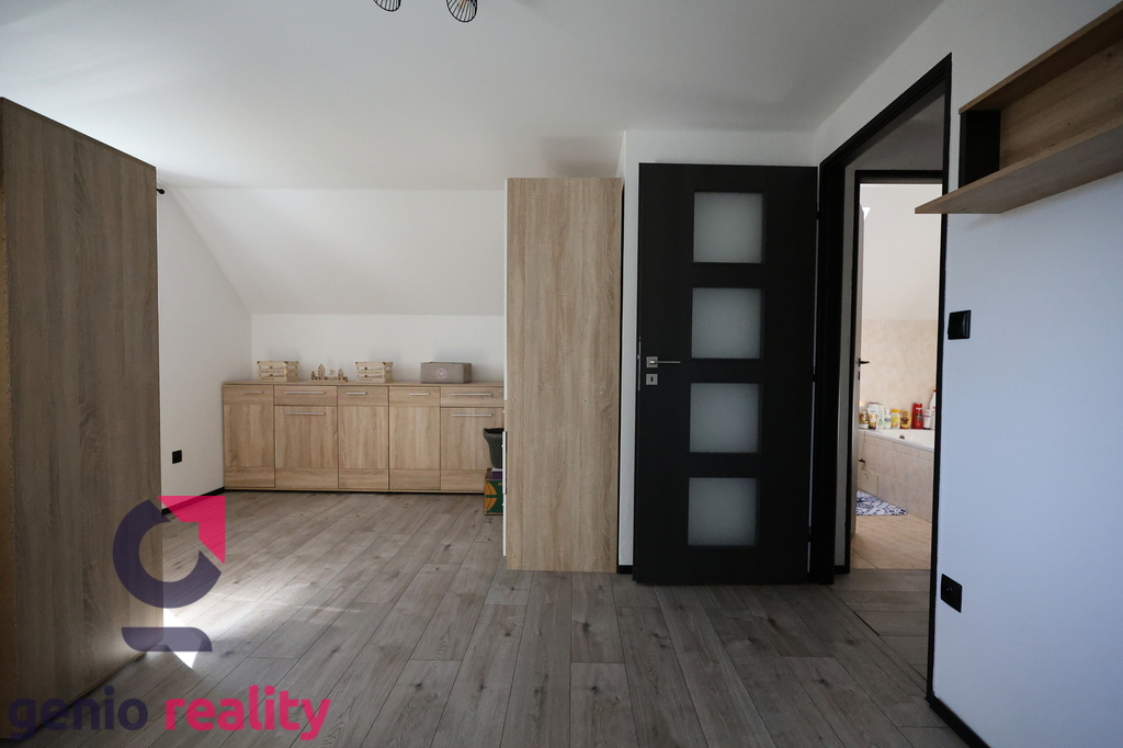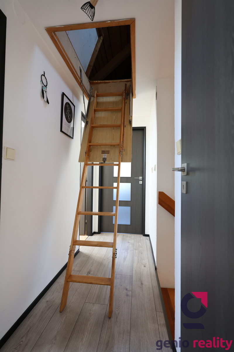 Úložné prostory: Kromě vestavěných skříní dům disponuje i půdou, která slouží jako velkorysý úložný prostor.