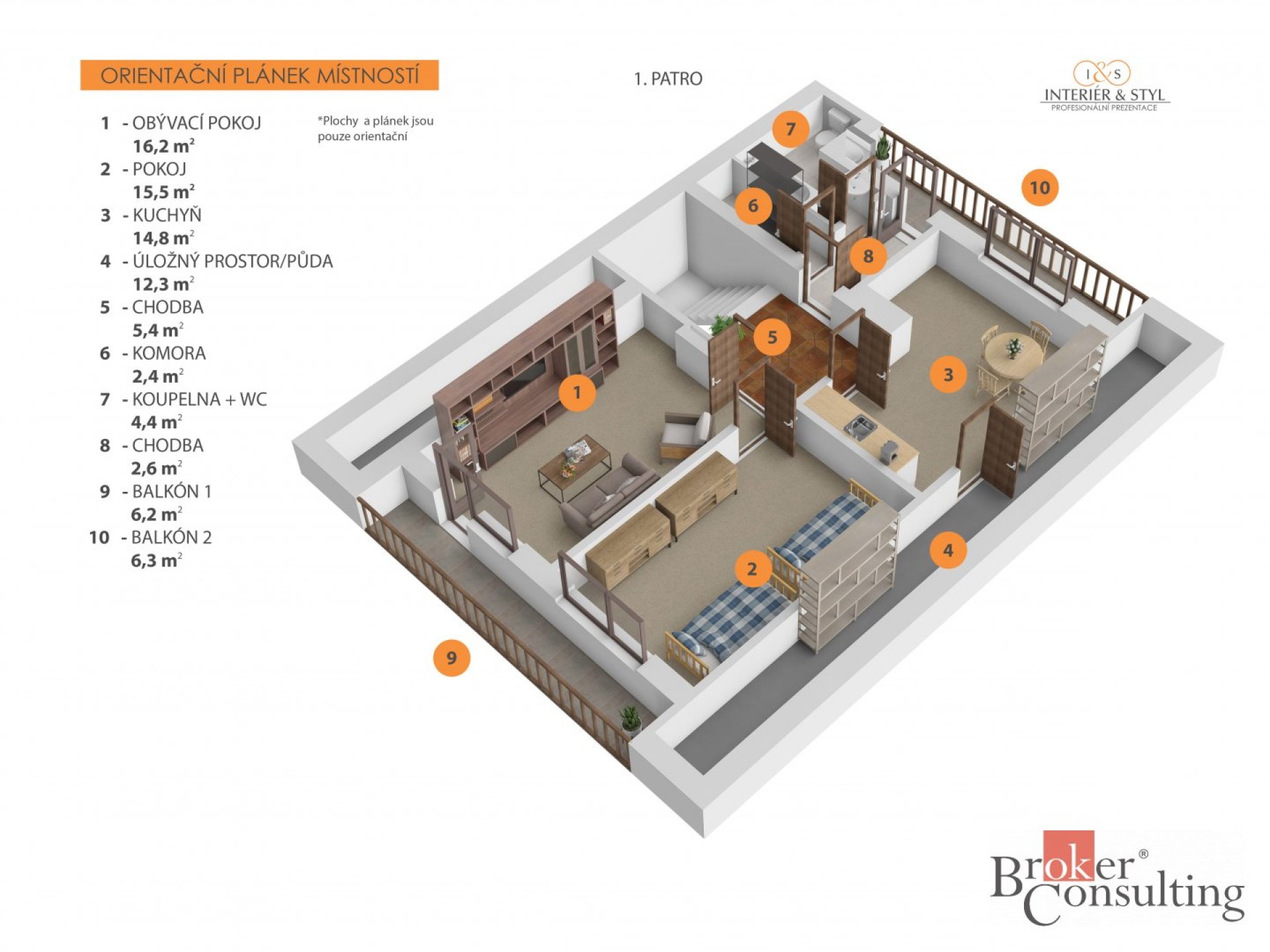 • Patro 2+1: světlý a vzdušný byt s balkonem, který nabízí klid a soukromí.