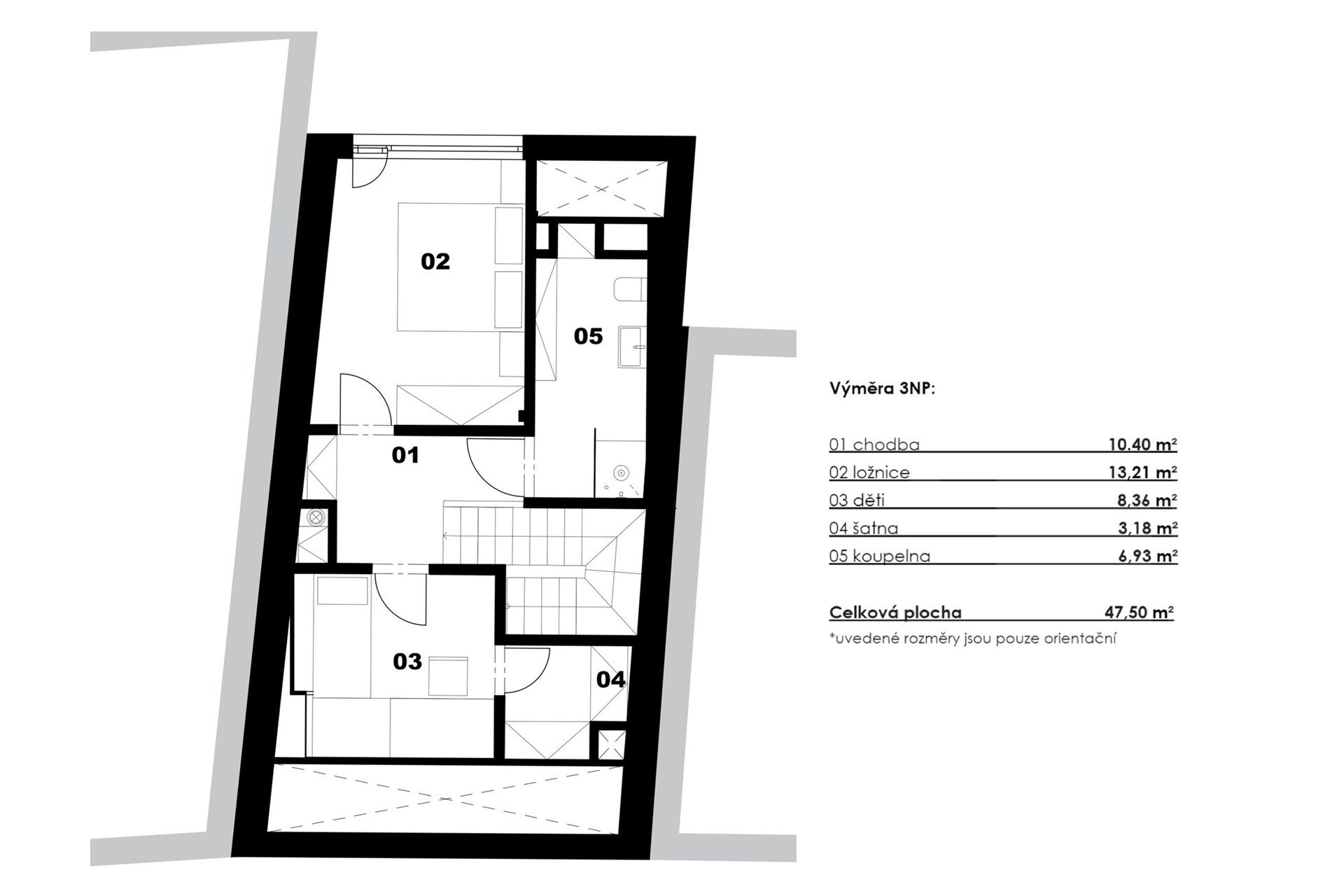 Schodiště vás zavede do druhého nadzemního patra s otevřeným obývacím prostorem, technickou místností a dětským pokojem s vestavěnou skříní. V podkroví, tedy 3. patře tohoto domu naleznete druhý dětský pokoj s velkým střešním ateliérem a šatnou, ložnici s rozsáhlou vestavnou skříní a druhou koupelnu.