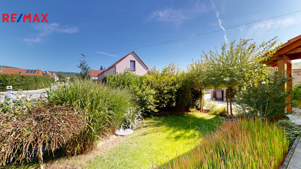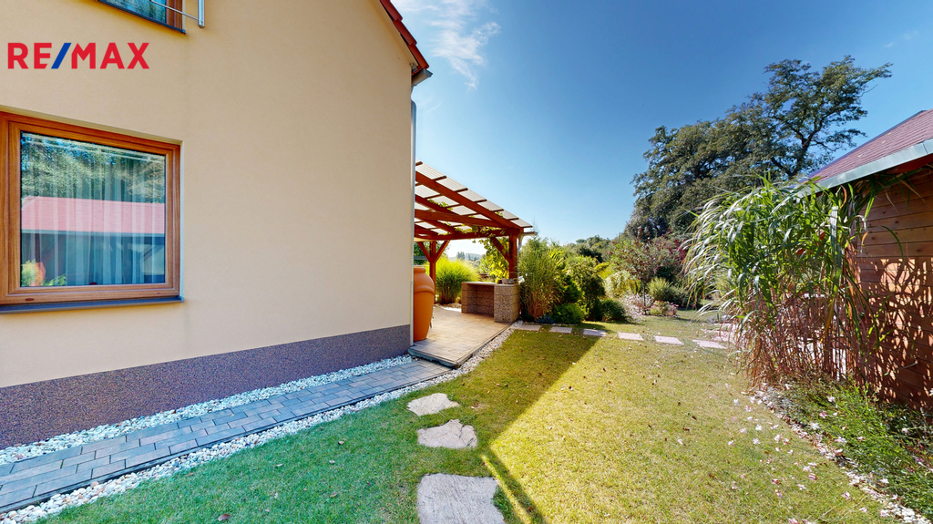 Na okrasné zahradě o výměře 306 m2 se nachází krytý bazén Albixon z roku 2020, o objemu 32 m3 ( hloubka 1,2 m, rozměry 3,5 x 7,5 m), na níž navazuje další část zahrady o výměře 500 m2, která je v dlouhodobém pronájmu od obce. Dále se na pozemku nachází kryté parkovací místo na auto o výměře 20 m2 a 2 zahradní domky na nářadí.