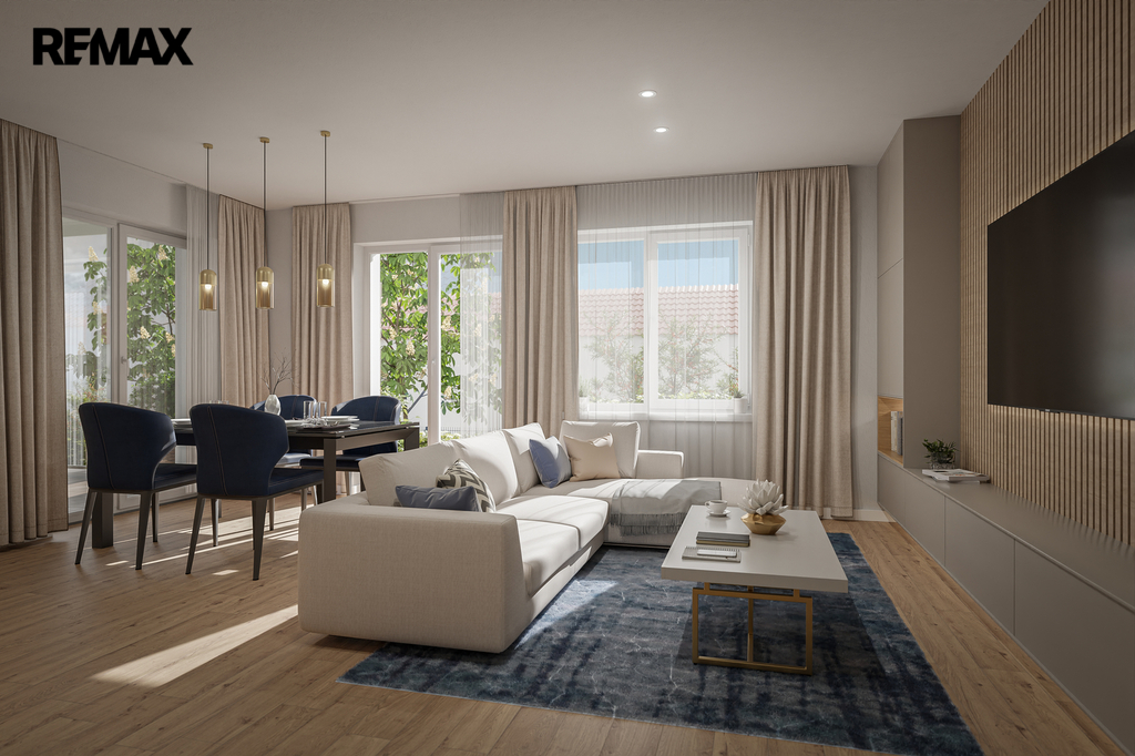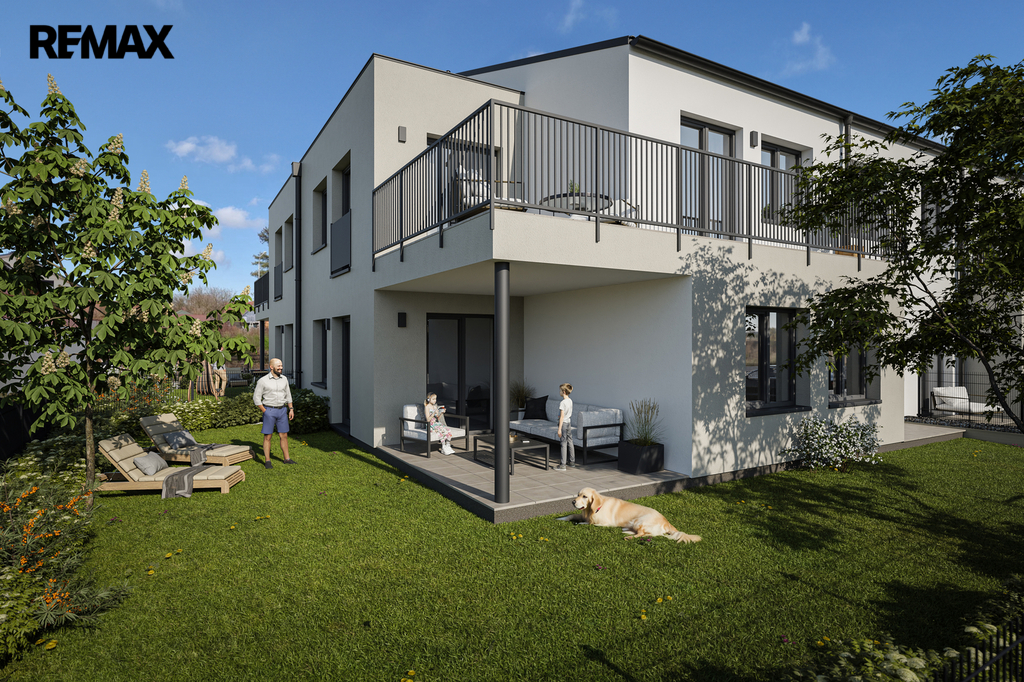 Každý byt disponuje vlastním venkovním prostorem – terasou nebo zahradou, praktickým sklepem a komfortním parkovacím stáním přímo u domu.