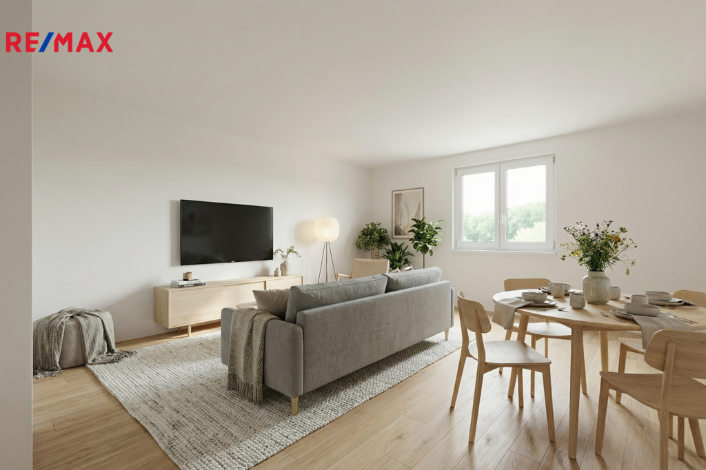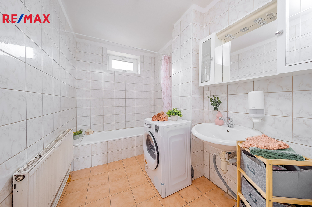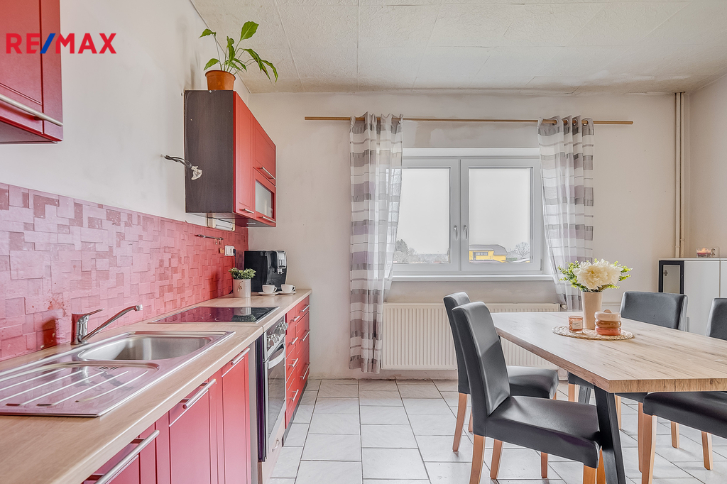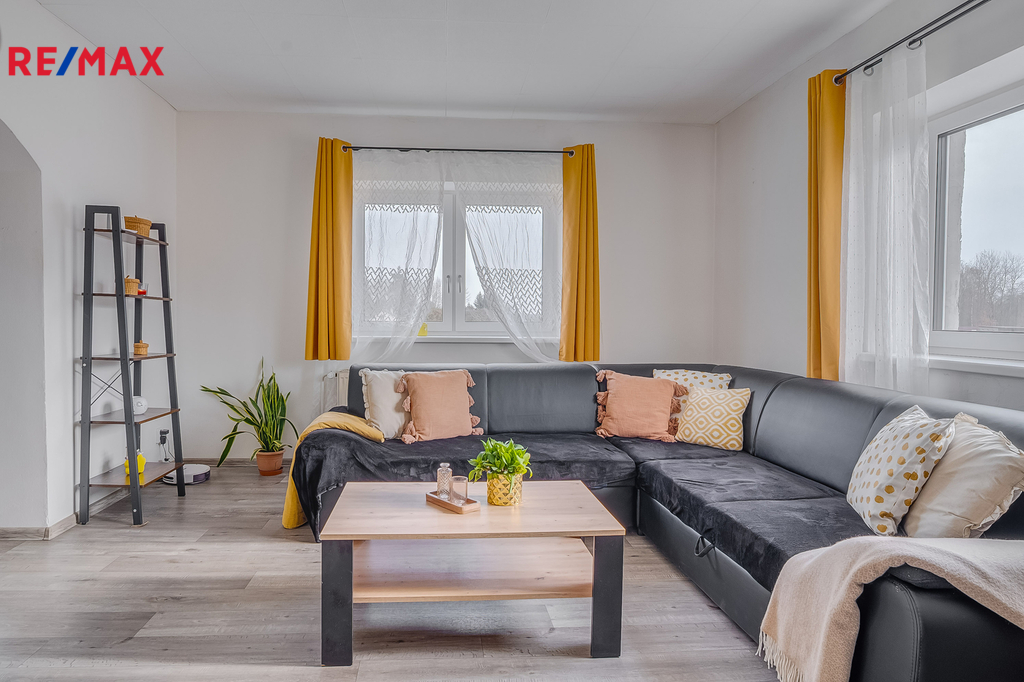První nadzemní podlaží o ploše 90 m² tvoří plnohodnotná, dokončená bytová jednotka. Nachází se zde vstupní chodba s úložným prostorem, prostorná kuchyně s jídelním koutem, obývací pokoj, ložnice, koupelna a samostatné WC. Vše je ve stavu umožňujícím okamžité bydlení, ideální pro rodinné jádro bez nutnosti větších počátečních úprav.