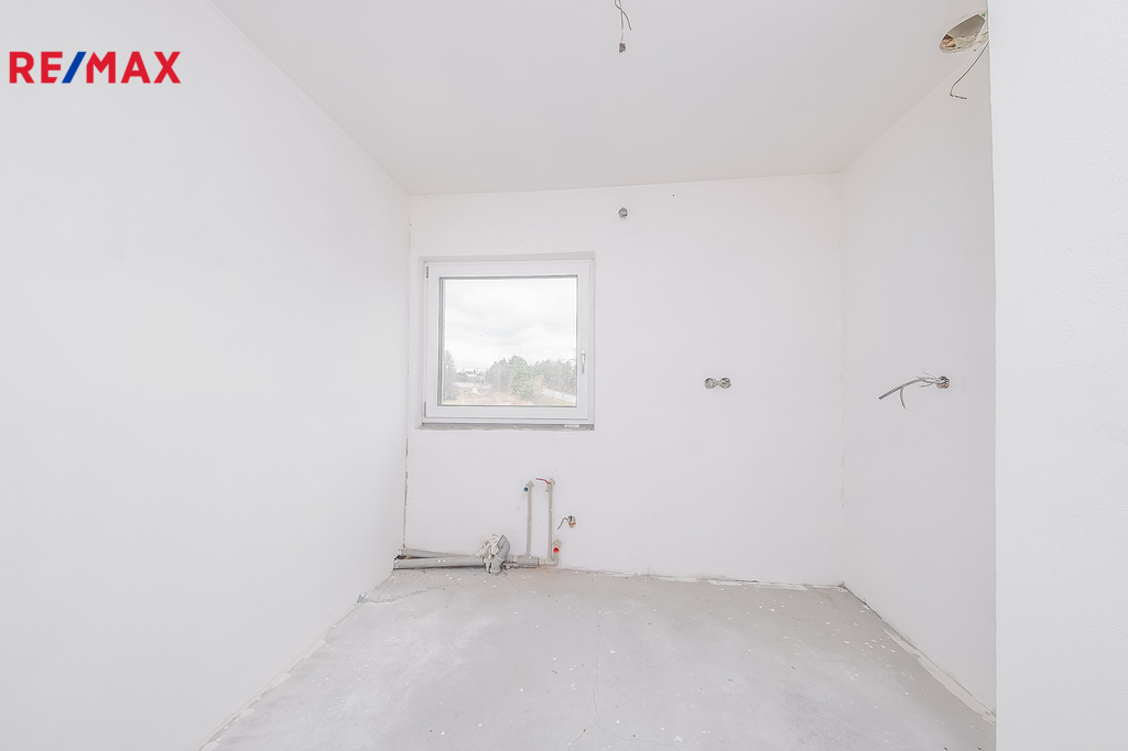 Druhé nadzemní podlaží má přibližně 85 m² a kombinuje již využívané pokoje s prostory před dokončením. Patro je připravené jako další obytná část – hotové rozvody, omítky a příprava na sanitu či kuchyň, chybí pouze finální povrchy dle vkusu nového majitele. Výrazným bonusem je terasa o velikosti 15 m², která rozšiřuje obytný prostor směrem ven a nabízí příjemné místo na posezení. Patro je ideální pro druhou bytovou jednotku, zónu pro děti nebo kombinaci bydlení a home office.