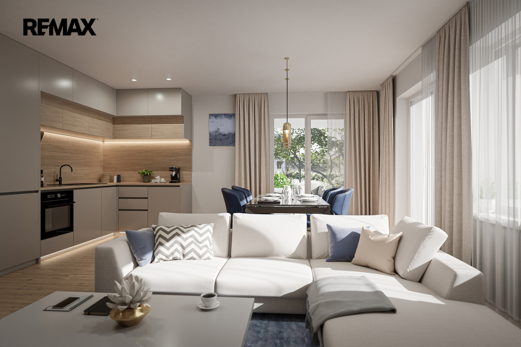 Každý byt disponuje vlastním venkovním prostorem – terasou nebo zahradou, praktickým sklepem a komfortním parkovacím stáním přímo u domu.