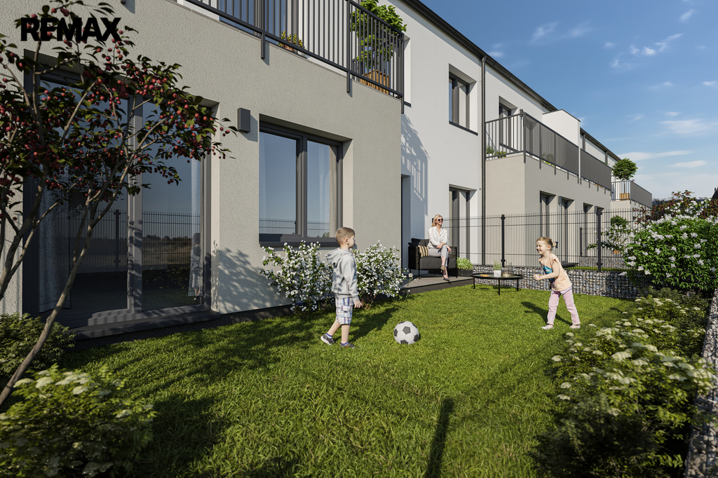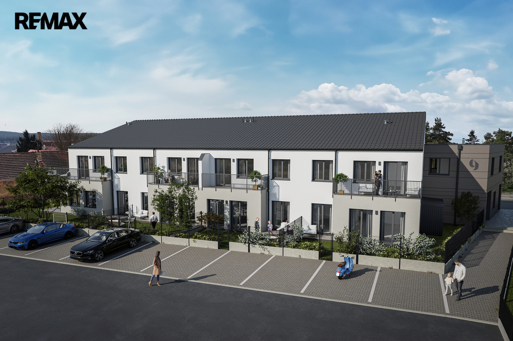 Každý byt disponuje vlastním venkovním prostorem – terasou nebo zahradou, praktickým sklepem a komfortním parkovacím stáním přímo u domu.