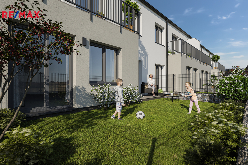Každý byt disponuje vlastním venkovním prostorem – terasou nebo zahradou, praktickým sklepem a komfortním parkovacím stáním přímo u domu.