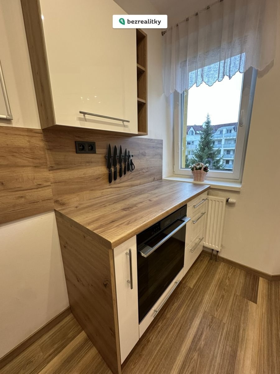 Koupelna a kuchyně prošly kompletní přestavbou – nová kuchyňská linka na míru s tlumenými dojezdy a novými vestavěnými spotřebiči (2023), nová vinylová podlaha v celém bytě (2021)