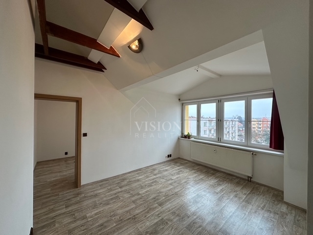 Nabízíme k pronájmu podkrovní byt 2+kk o celkové ploše 42 m² (obytná plocha 37 m²), nacházející se v 5. patře bytového domu s výtahem.
