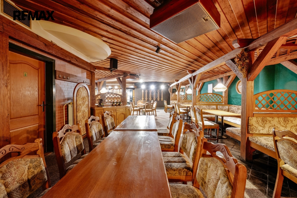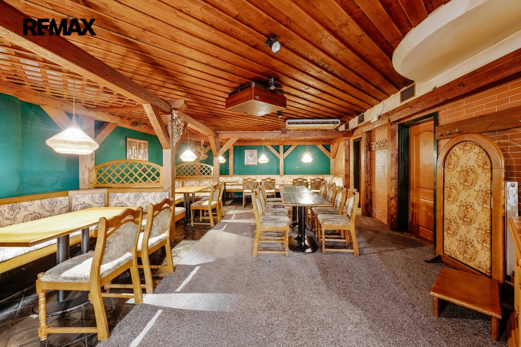 Dispoziční řešení: Hlavní část tvoří restaurace s barem pro cca 70 osob, salonek s kapacitou pro cca 20 osob, prostory přípravny/výrobny, kancelář, chladící box, šatna se sprchou pro personál, WC pro muže, ženy a personál, chodba, úklidová komora, strojovna výtahu, výtah a schodiště.