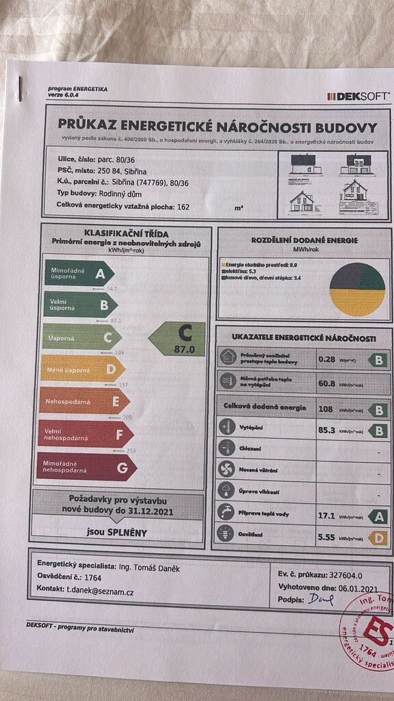 - Energetický ukazatel podle vyhlášky: č. 264/2020 Sb.
