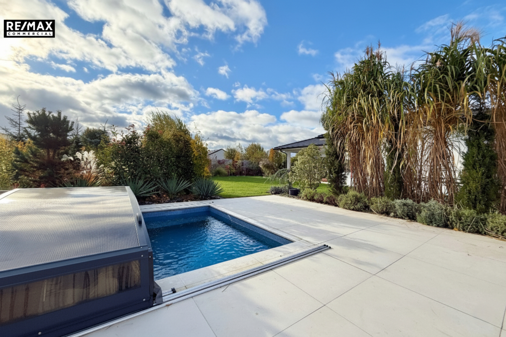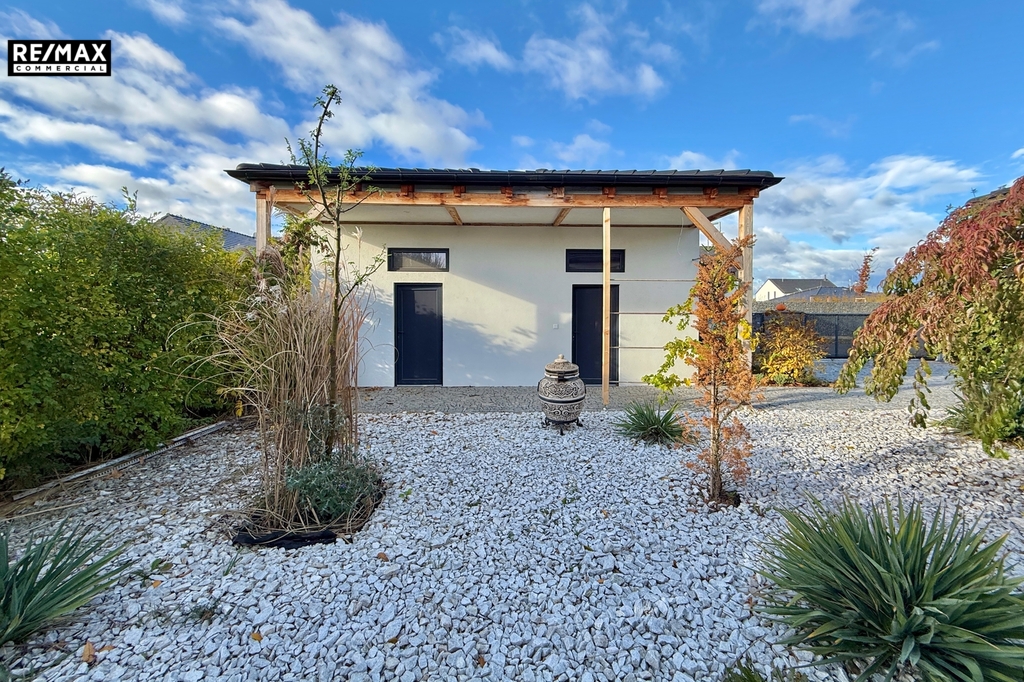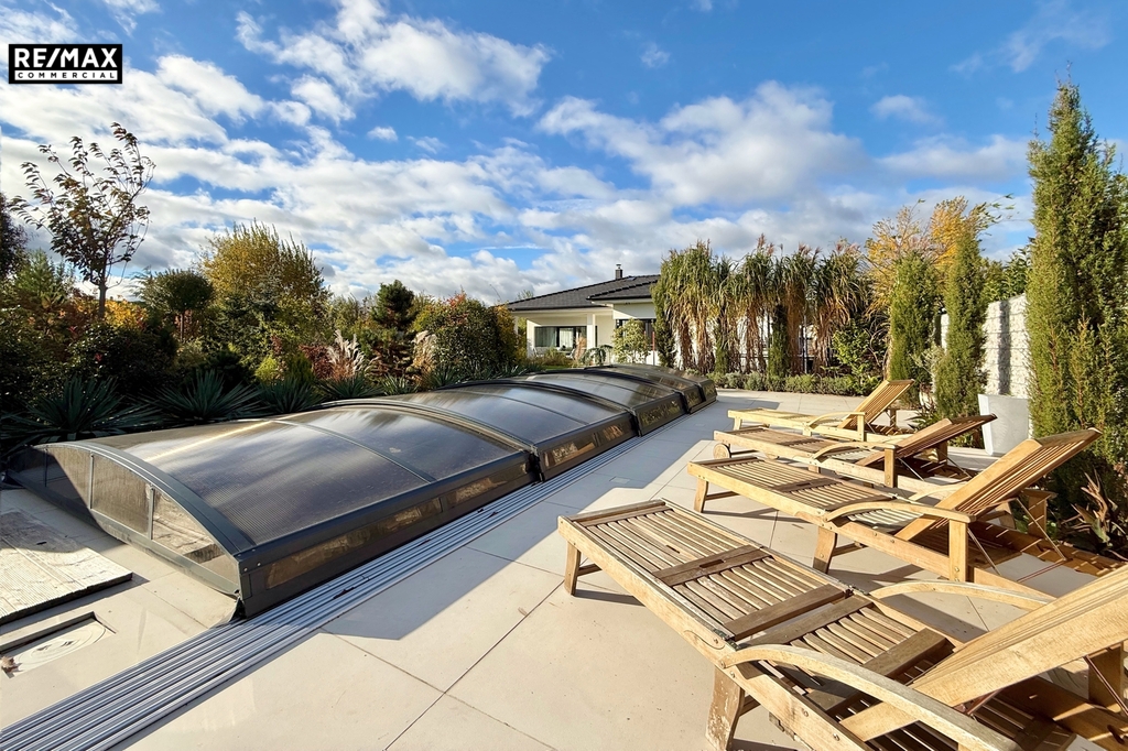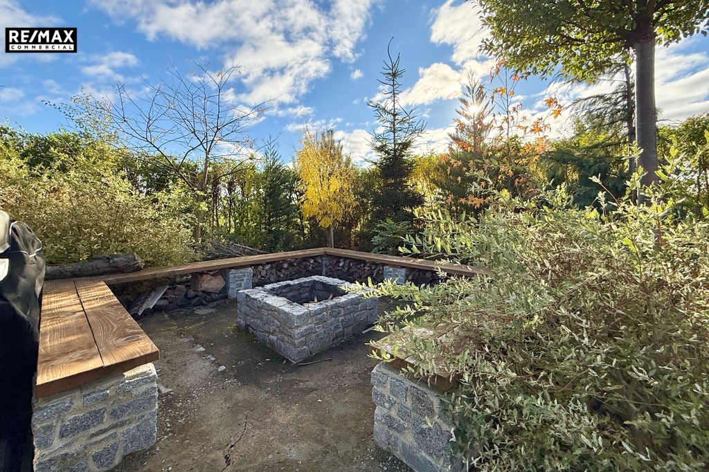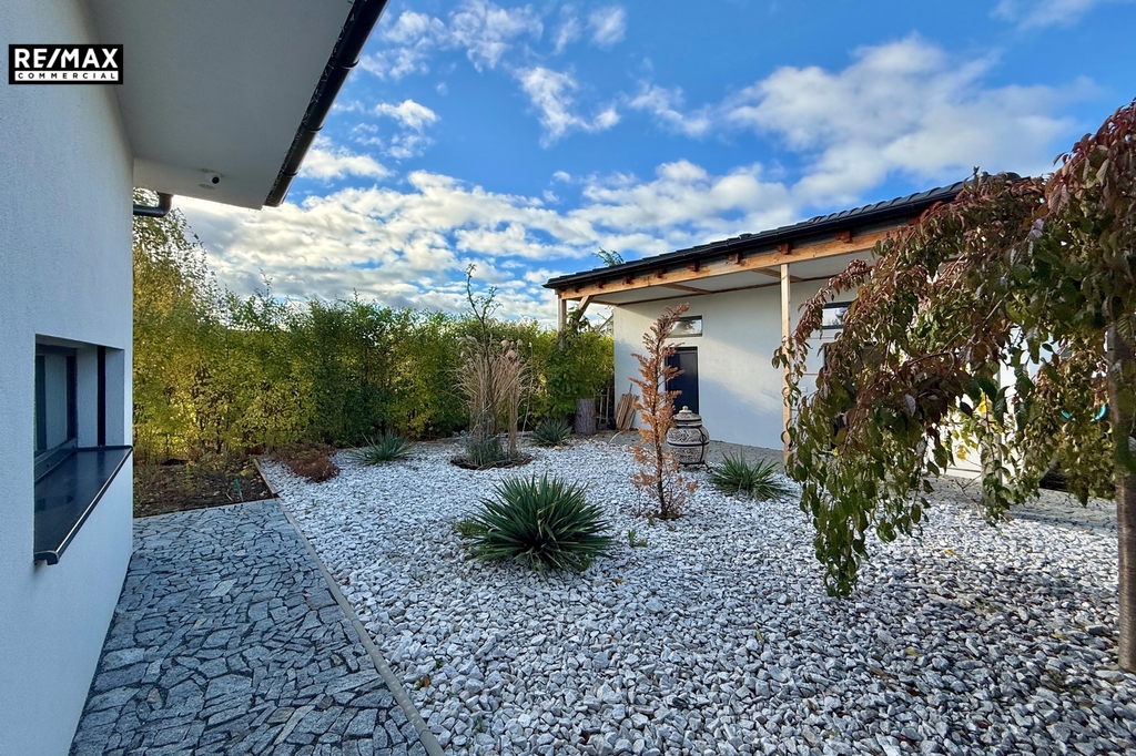• Zahrada jako oáza klidu – pečlivě udržovaná zeleň, kamenné ohniště, bazén s krytím a terasy. Oplocení a vzrostlá zeleň vytváří naprosté soukromí. Část zahrady je upravená v japonském stylu, kde se můžete ztratit před zraky rodiny a relaxovat.