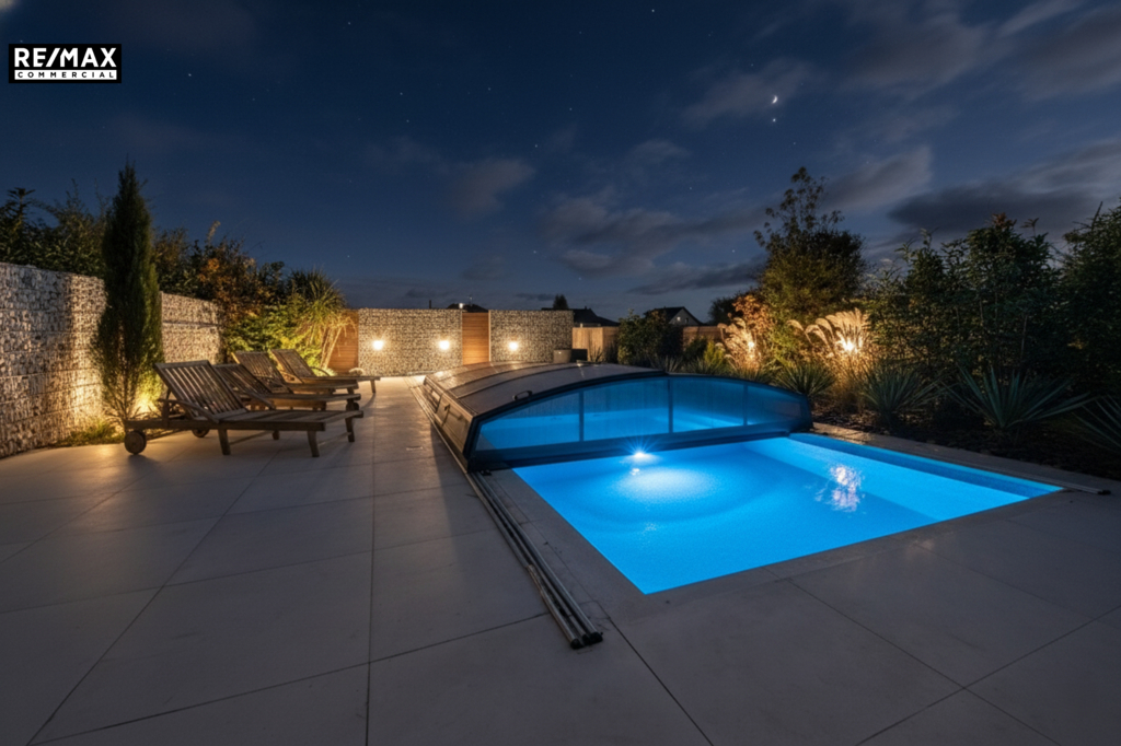 Na zahradě se nachází bazén o rozměrech 8 × 4 metry a hloubce 1,4 metru. Je vybaven posuvným krytím, protiproudem, tepelným čerpadlem a technologií slané vody.