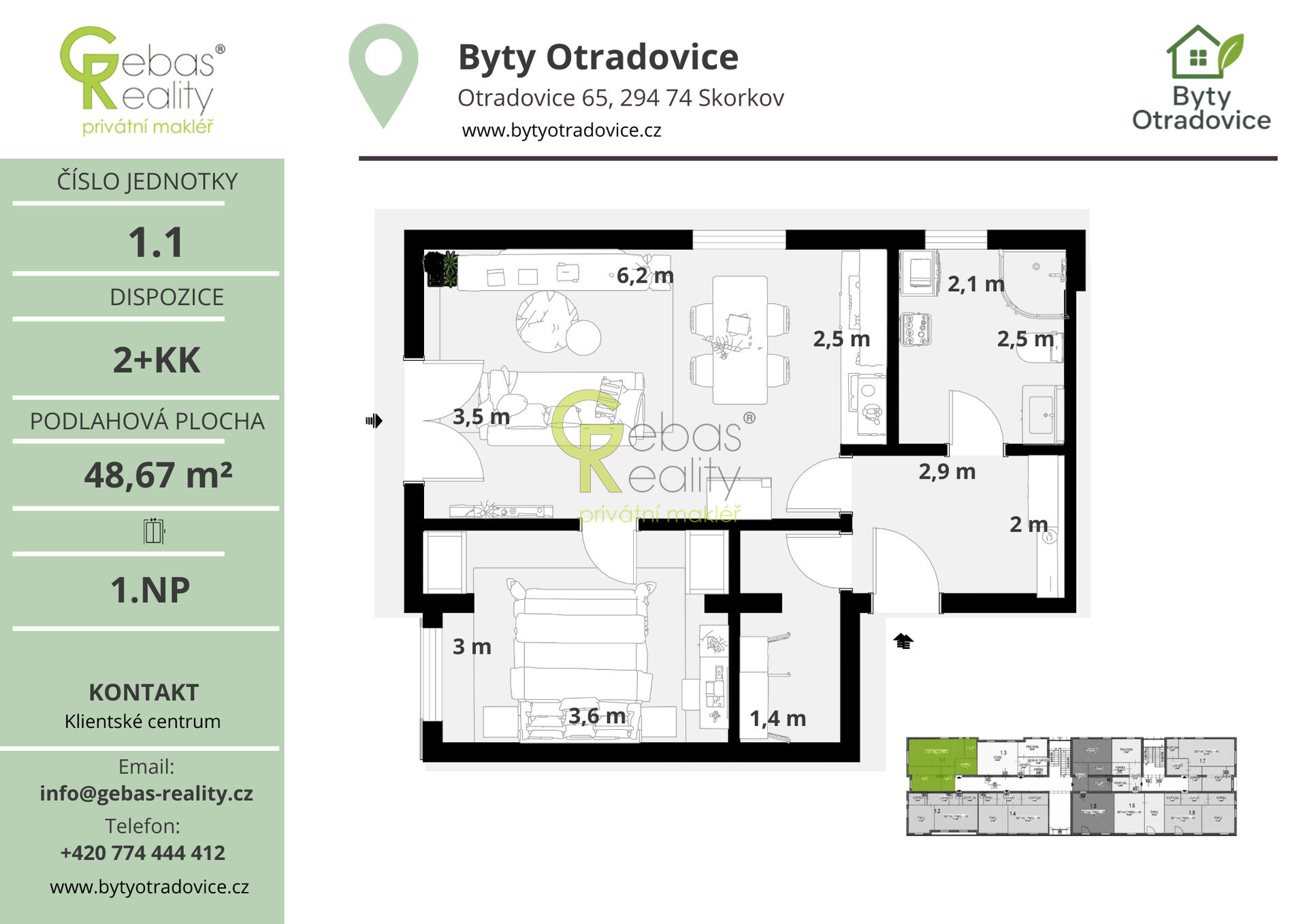 | Dispozice/podlahová plocha: | 2+kk/48 m² |