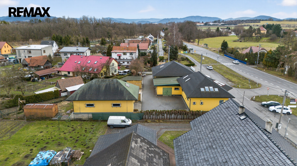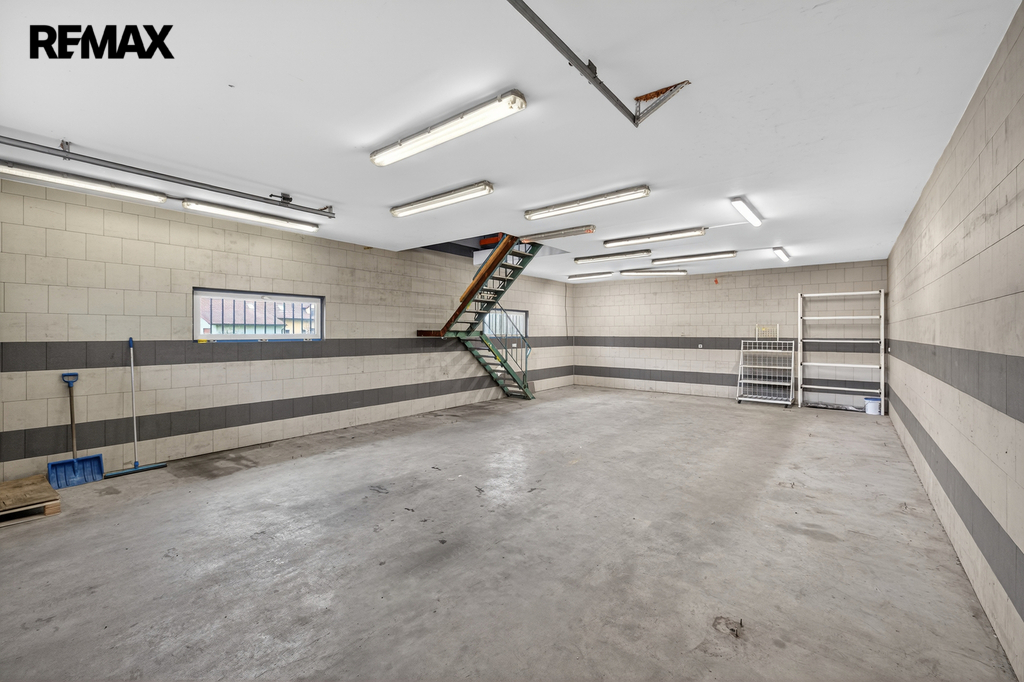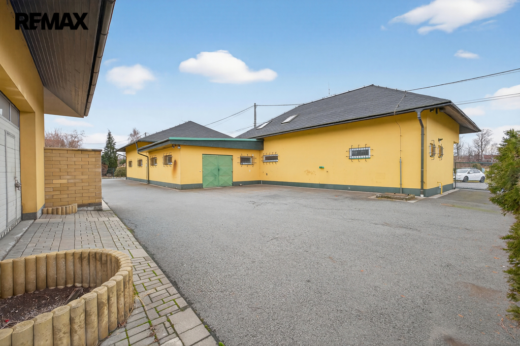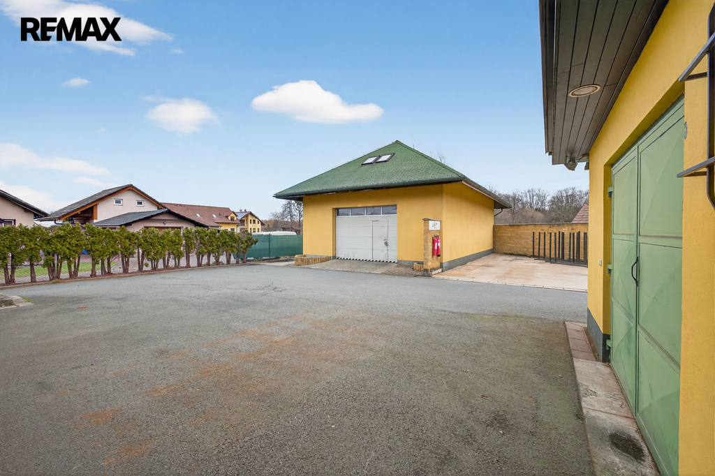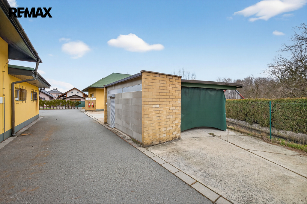 V areálu se dále nachází samostatná zděná budova skladu/garáže s využitým podkrovím, vhodná pro skladování, dílnu nebo lehkou výrobu. K dispozici jsou zpevněné plochy a parkování na vlastních pozemcích.
