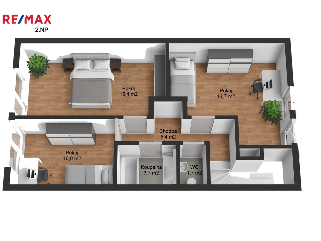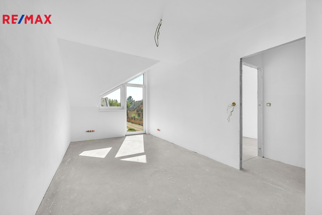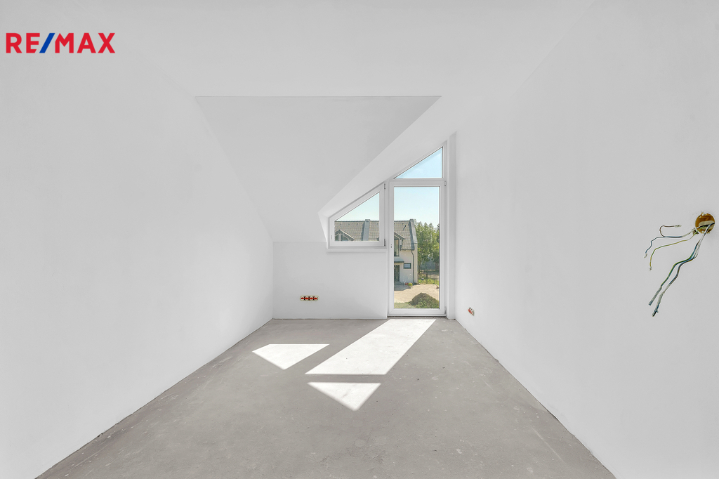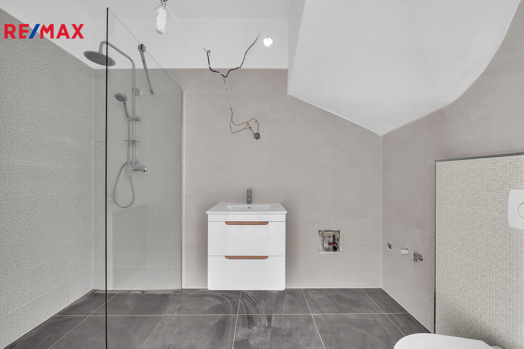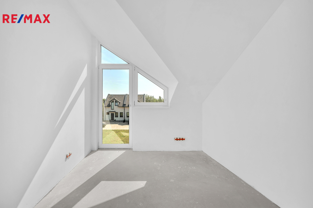 Podkroví ukrývá tři samostatné ložnice, koupelnu s vanou, samostatné WC a prostornou chodbu se vstupy do všech pokojů.