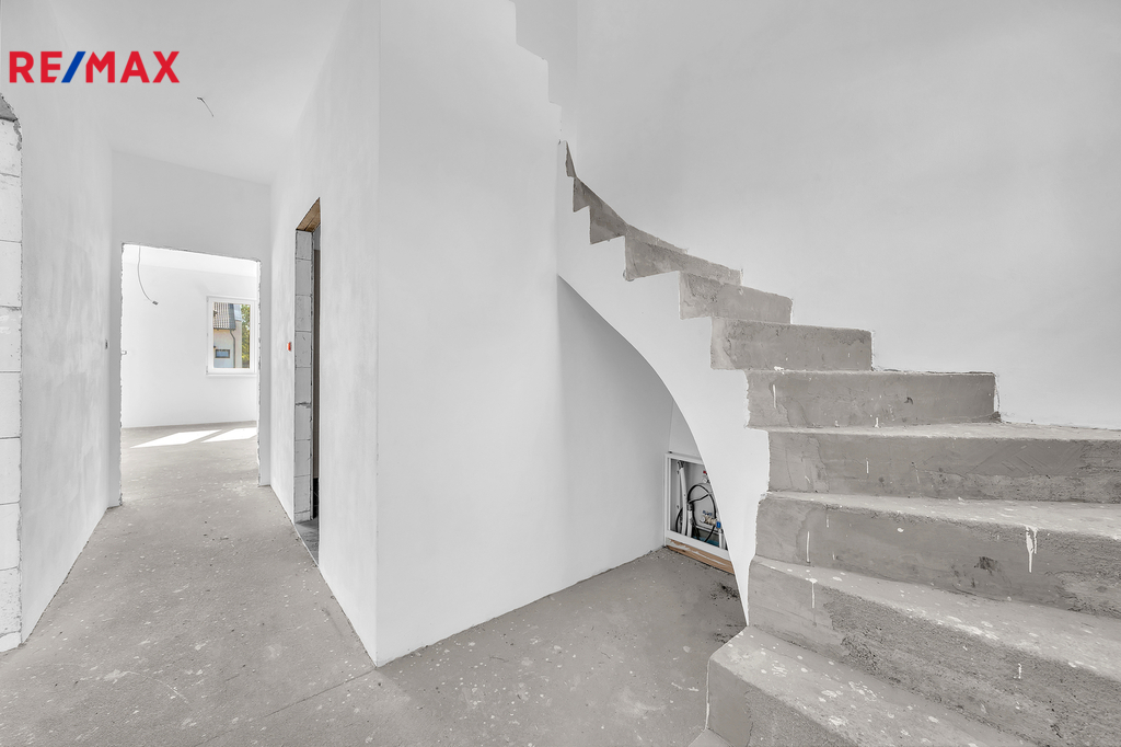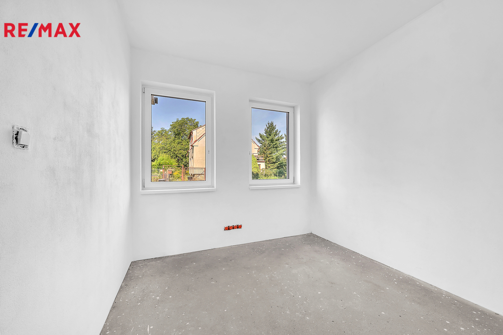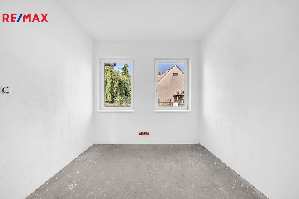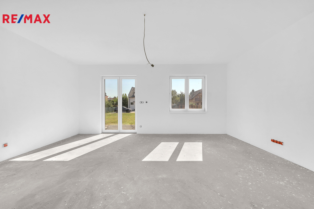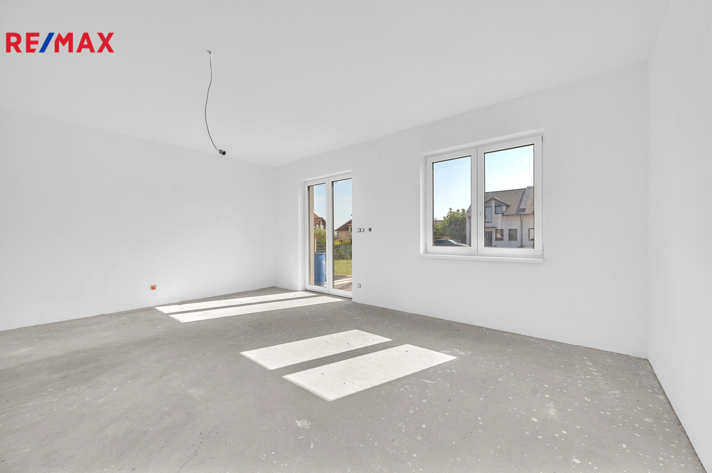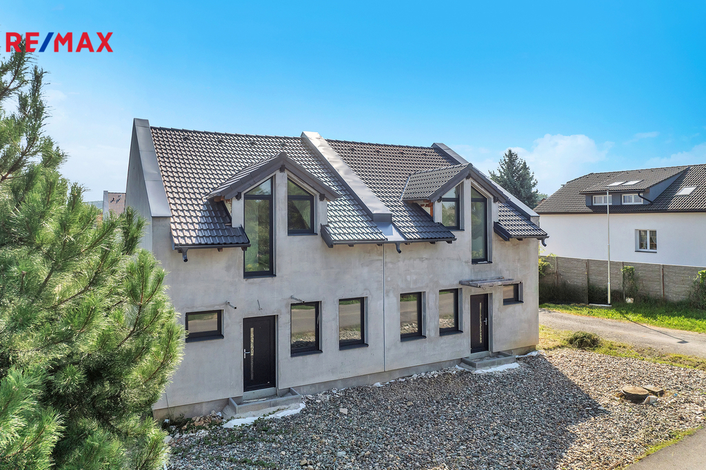 Pak vás možná osloví tato novostavba rodinného domu (polovina dvojdomu) ve Škvorci – prostorný dům s vlastní zahradou, který kombinuje výhody bydlení u hlavního města a klid venkovského prostředí.