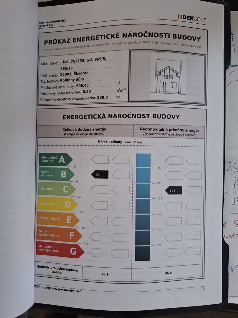 - Ukazatel energetické náročnosti budovy: 93 kWh/m²