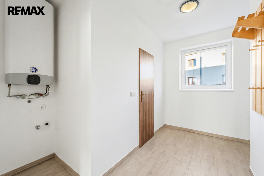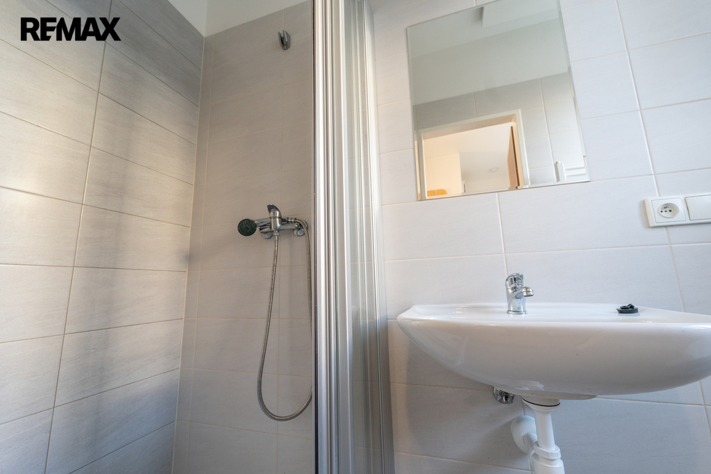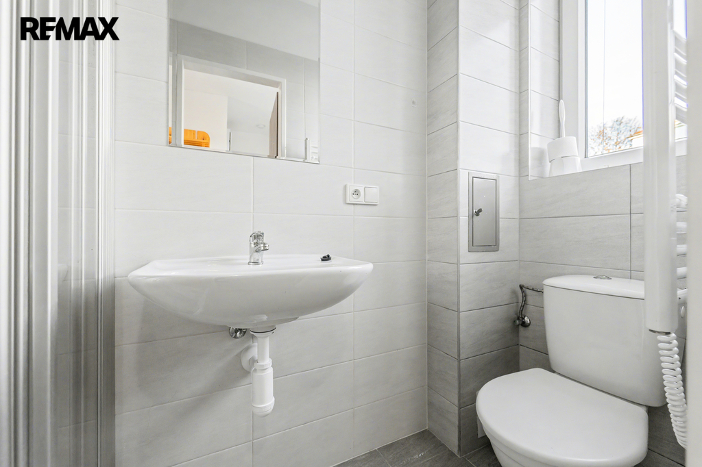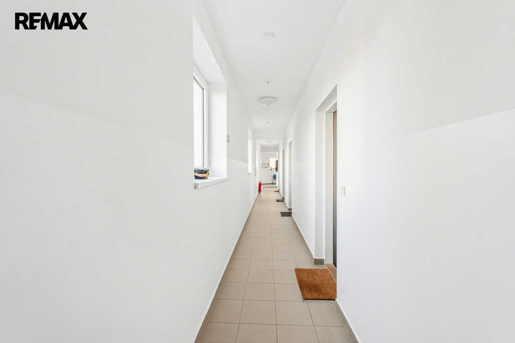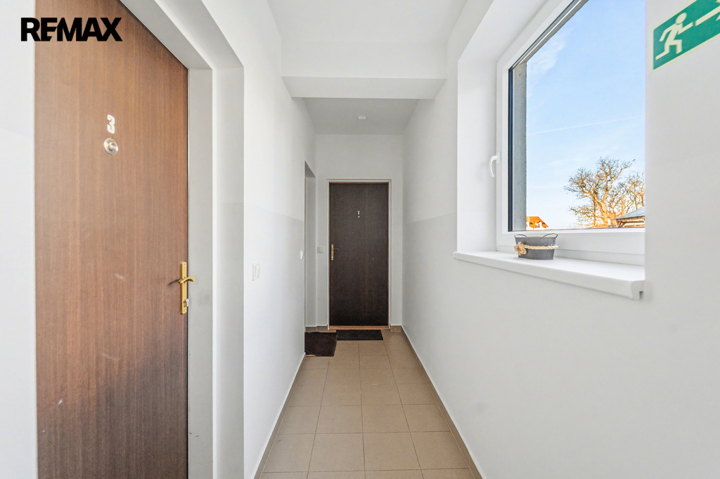 Byt o výměře 29 m² se nachází v 1. nadzemním podlaží novostavby třípodlažního cihlového domu. Je řešen jako praktický a úsporný, částečně vybaven kuchyňskou linkou s lednicí. Koupelna je se sprchovým koutem.