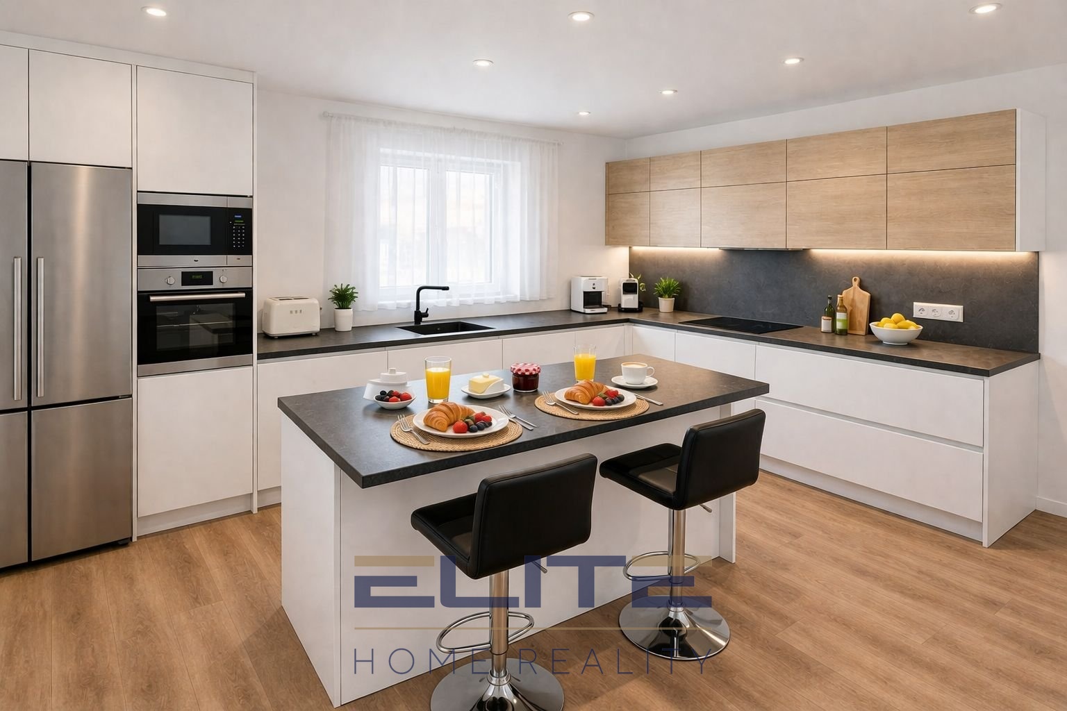 Samozřejmostí jsou prémiová okna Internorm s předokenními žaluziemi a moderní vstupní dveře s elektronickým zámkem a čtečkou otisků prstů.
