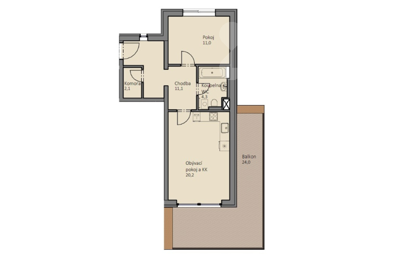 | Dispozice/podlahová plocha: | 2+kk/55 m² |