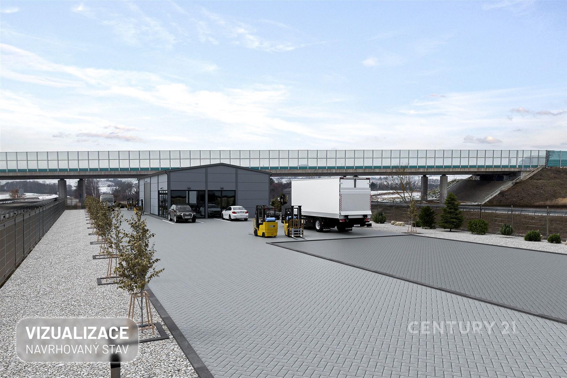 Plánovaná hala o ploše cca 300 m² nabídne plně vybavené provozní zázemí. Druhá část haly je navržena s velkými vjezdovými vraty, ideální pro skladování, parkování techniky nebo servisní činnost.