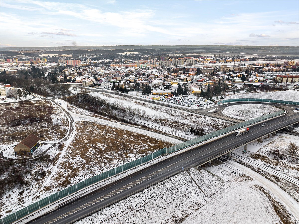 Velkou předností je strategická poloha – téměř v centru Slaného, zároveň přímo na páteřním městském okruhu s napojením na dvě dálnice. Areál leží na frekventované trase, kudy denně projíždějí potenciální zákazníci. Na okraj Prahy i na letiště se dostanete přibližně do 20 minut.