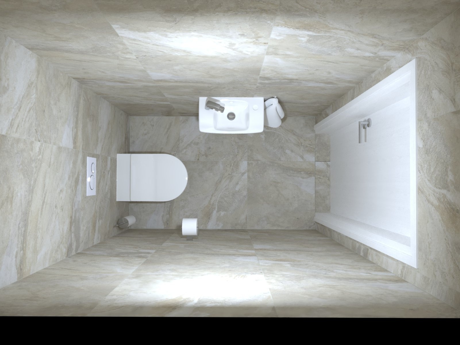 - sanitární technika, sprchový kout, včetně sprchového setu, umyvadlo včetně baterie, vana, závěsné WC, zrcadlo, obklady - mramor
