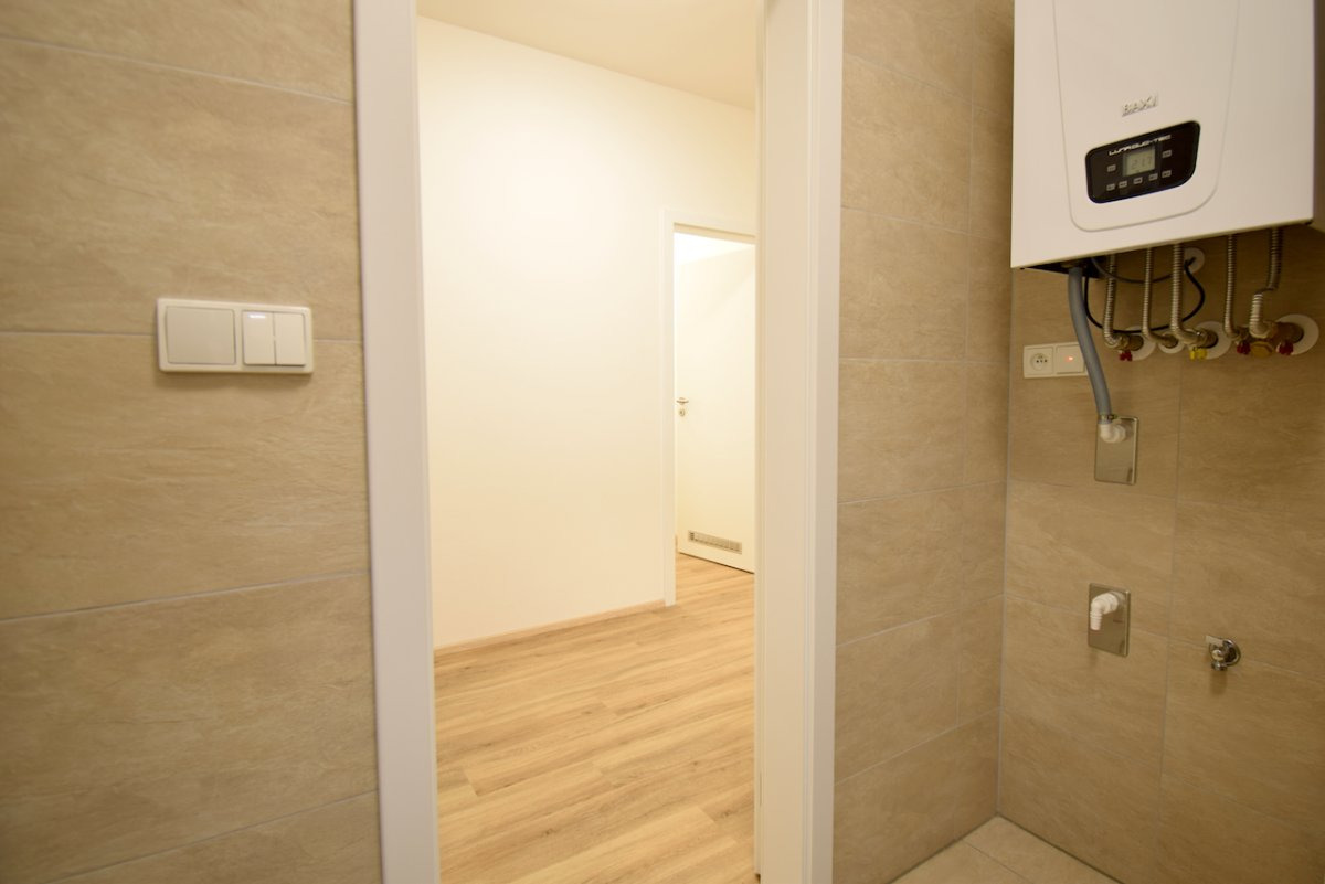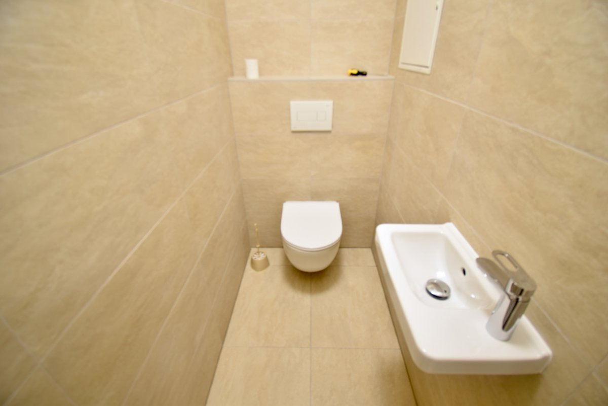 Prostorná předsíň, samostatné wc s umyvadlem, prostorná koupelna s kotlem, sprchovým koutem, přípojkou na pračku a umyvadlem.