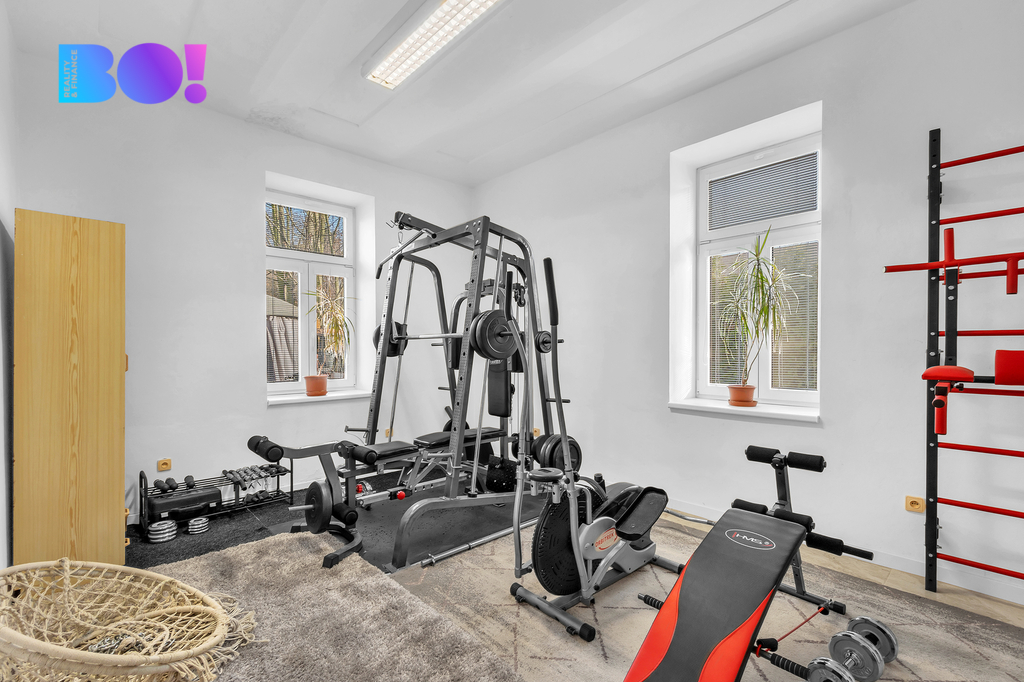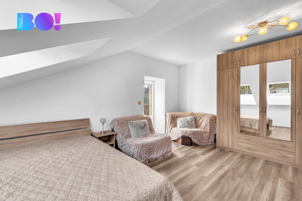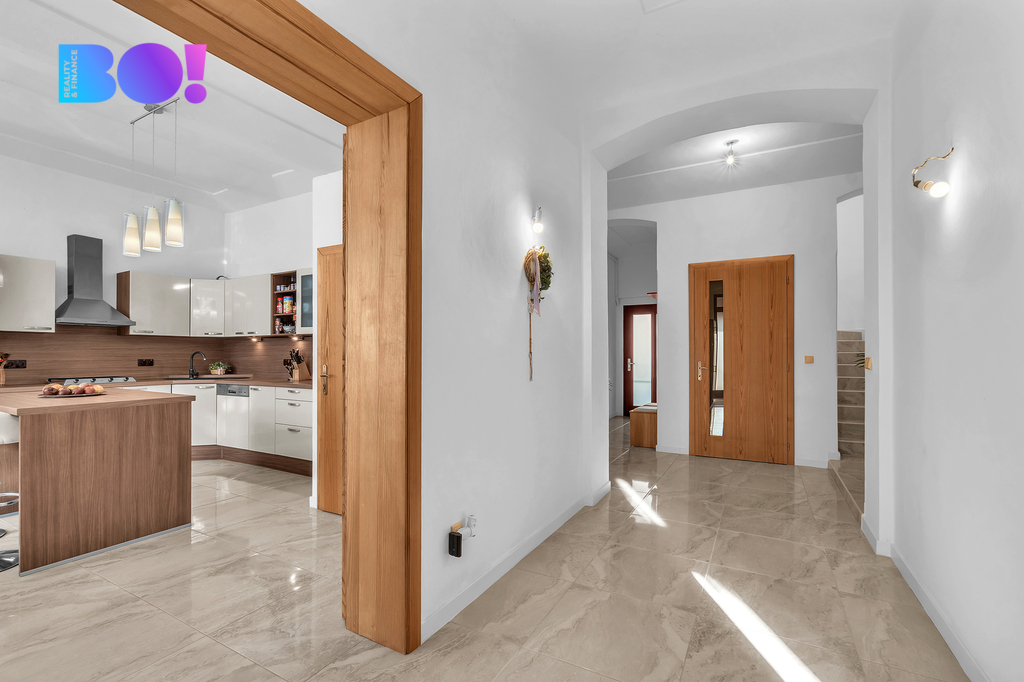 V prvním podlaží se nachází obývací pokoj, kuchyně, koupelna se sprchovým koutem a vanou, WC a domácí posilovna. Ve druhém podlaží pak ložnice, 2 pokoje, pracovna a WC. V místnostech jsou plovoucí podlahy a keramická dlažba. Při rekonstrukci byly použity kvalitní materiály a bylo postupováno velmi citlivě díky čemuž interiér působí velmi příjemným a útulným dojmem.
