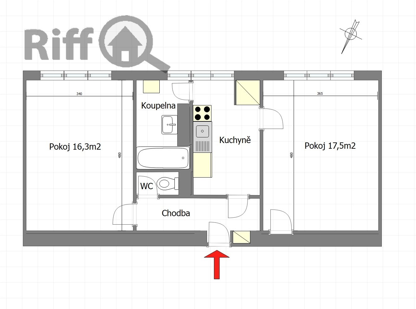 Byt je udržovaný, vhodně dispozičně řešený – oba pokoje (16,58m2 a 17,23m2) mají samostatný vchod z chodby, nejsou průchozí. Wc (1m2) a koupelna (4,21m2) jsou oddělené. Vytápění plynovým kotlem, ohřev vody je řešen elektrickým bojlerem. Zařízení, které vidíte na fotografiích, je možné v bytě ponechat.