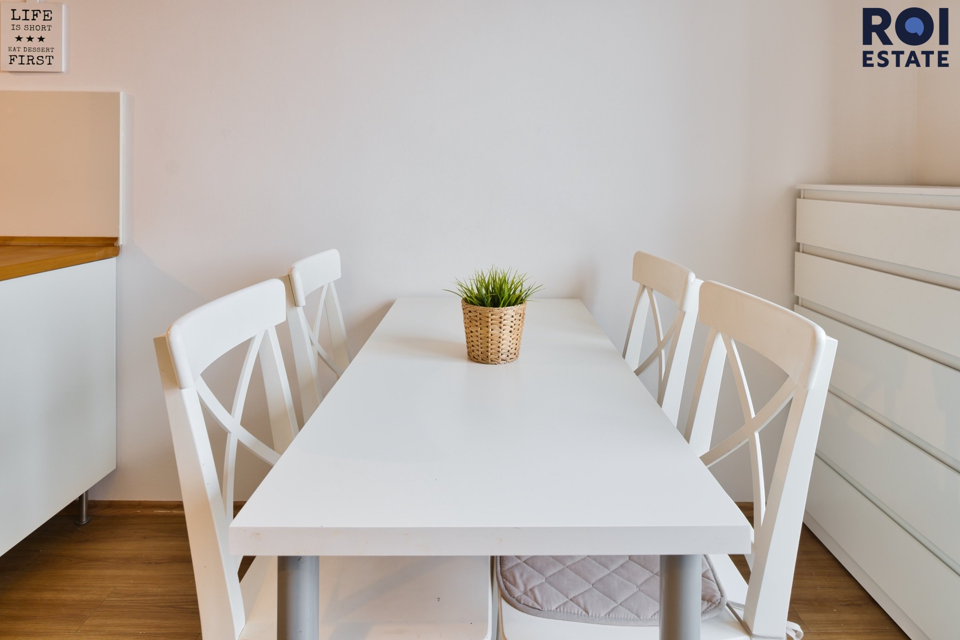 Díky praktické a oblíbené dispozici a kompletnímu vybavení, které vidíte na fotografiích, si můžete užívat pohodlí od prvního dne – vše v bytě může zůstat. K dispozici je plně vybavená kuchyň s myčkou, v koupelně pračka a v celém bytě je spousta úložného prostoru, což ocení každý, kdo má rád pořádek a funkční řešení.